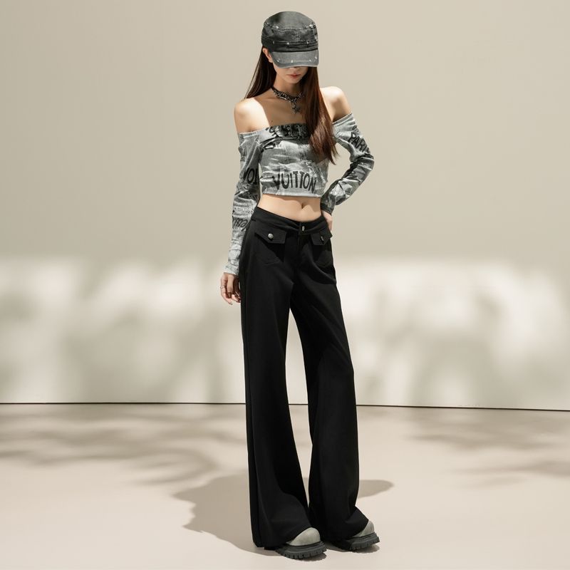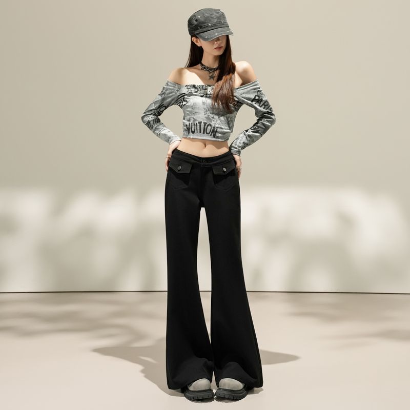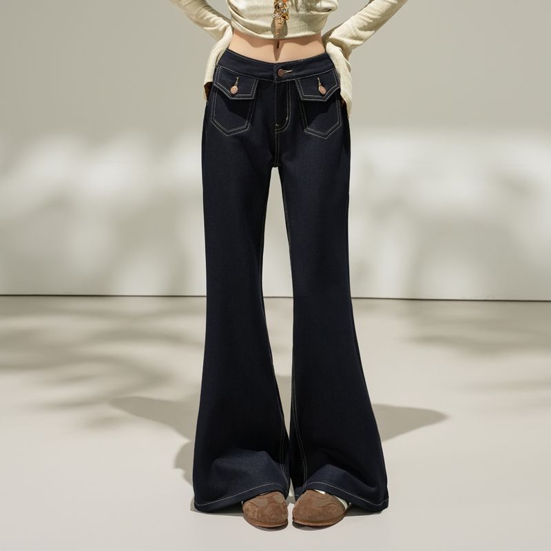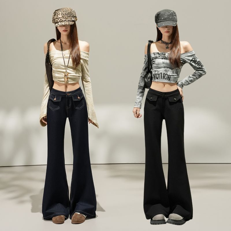FA55829# 质感原色|美式低腰双口袋微喇牛仔裤包臀修身显瘦百搭女长裤 服裝批發女裝批發服飾貨源