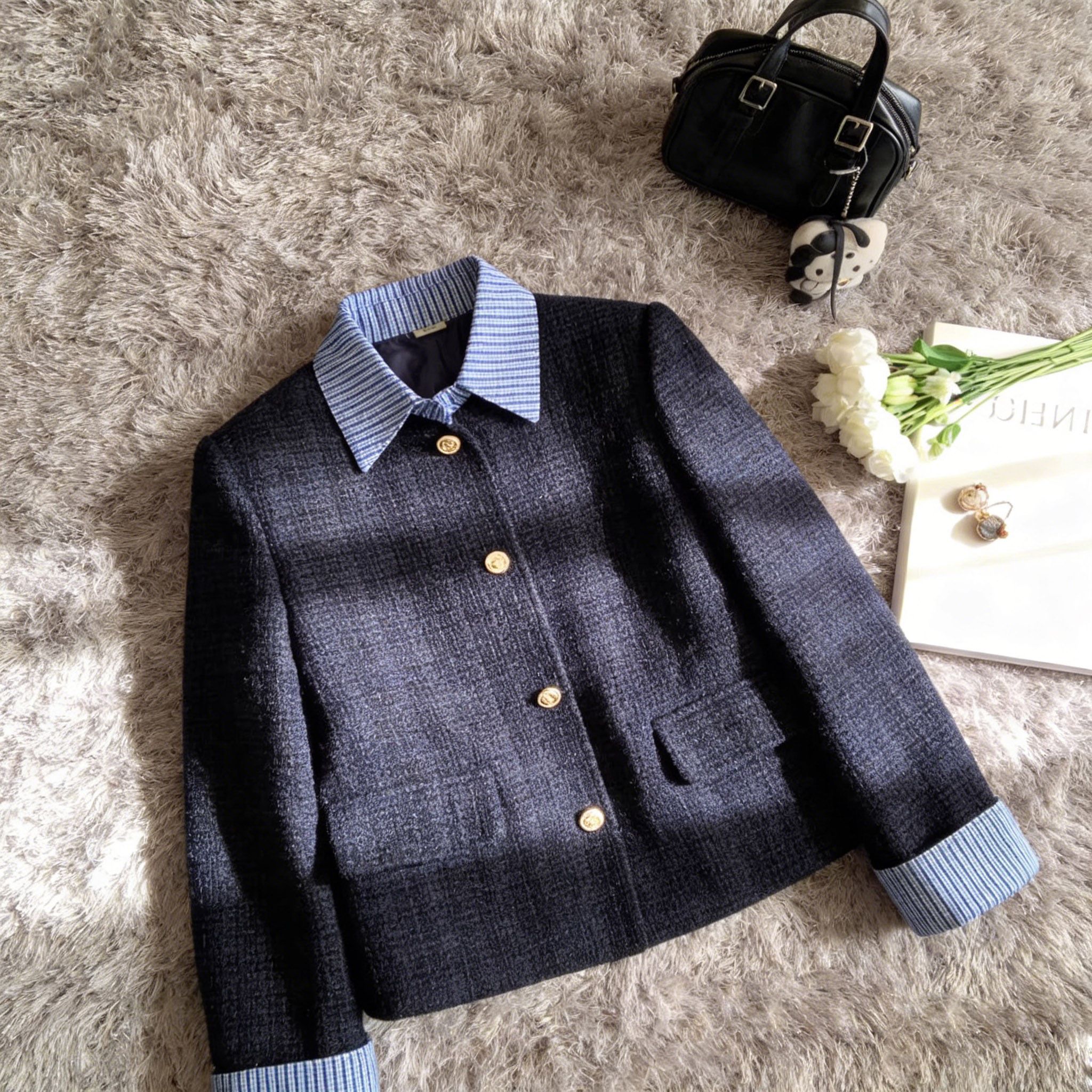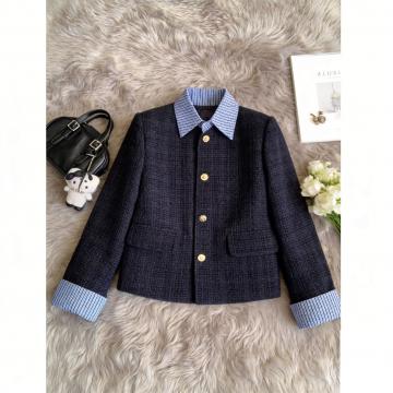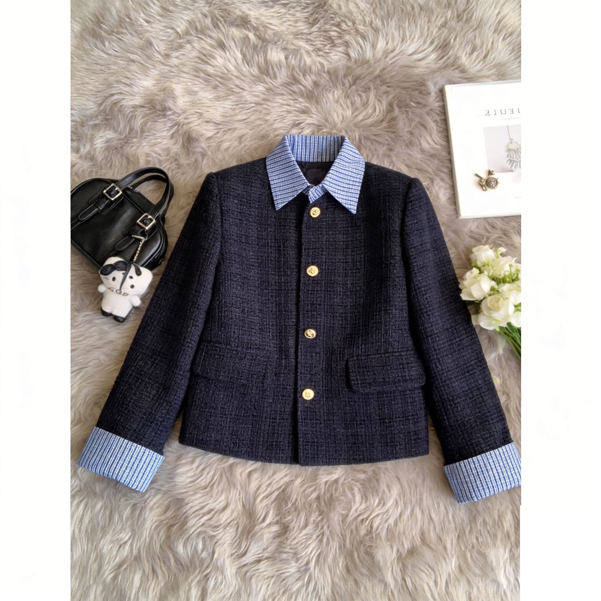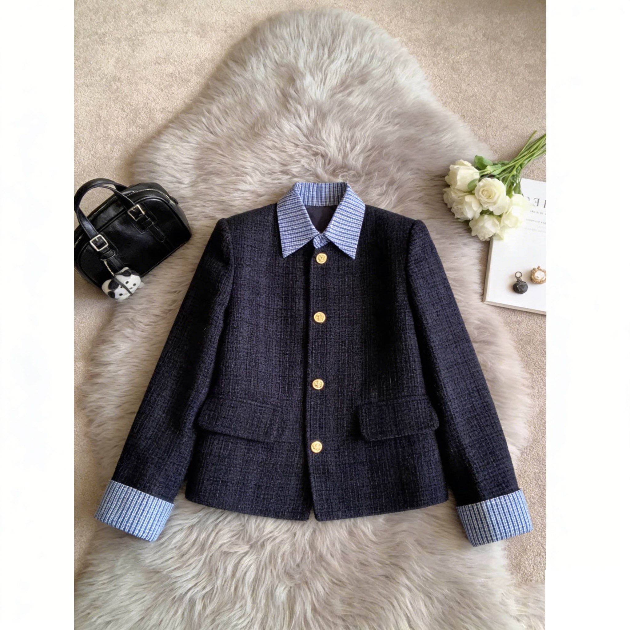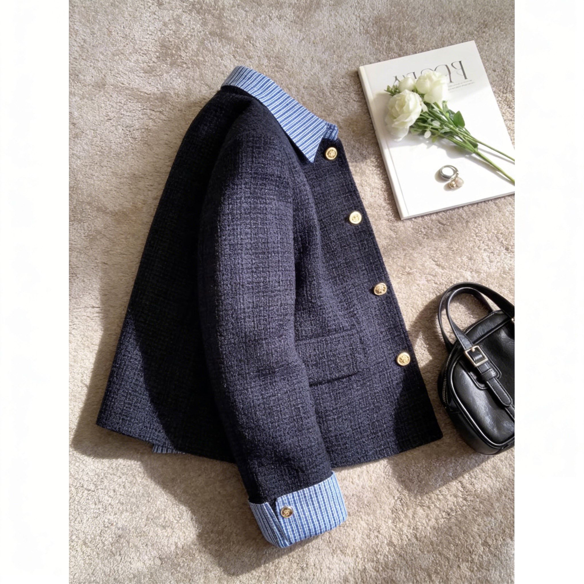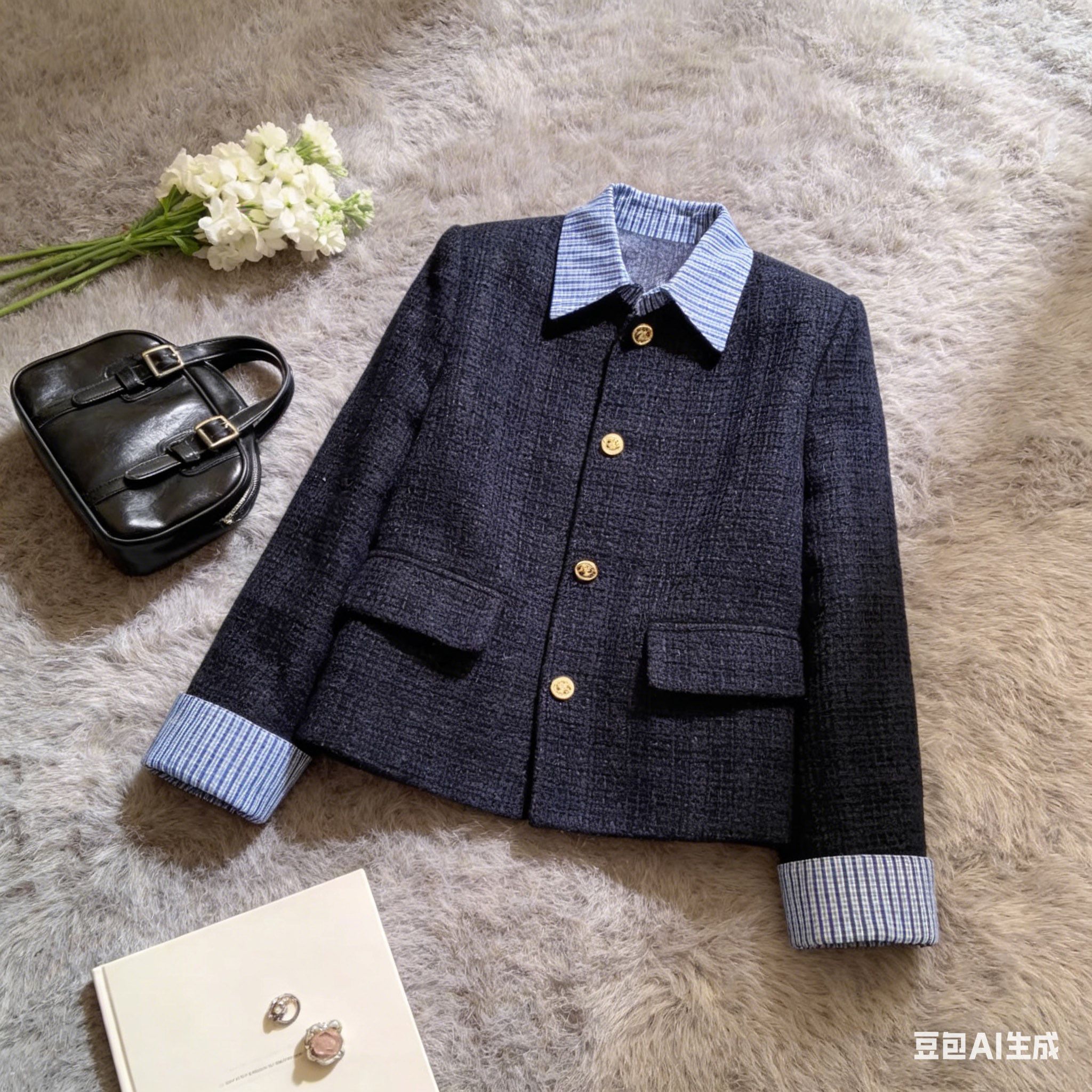 FA55832# 大码韩系温柔小香风女春秋新款单排扣假两件外套显瘦气质上衣 服裝批發女裝批發服飾貨源
