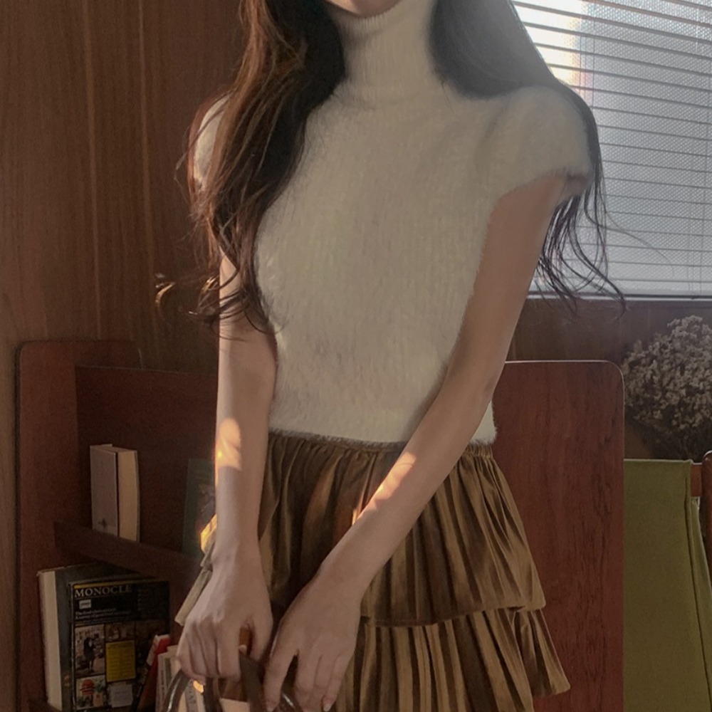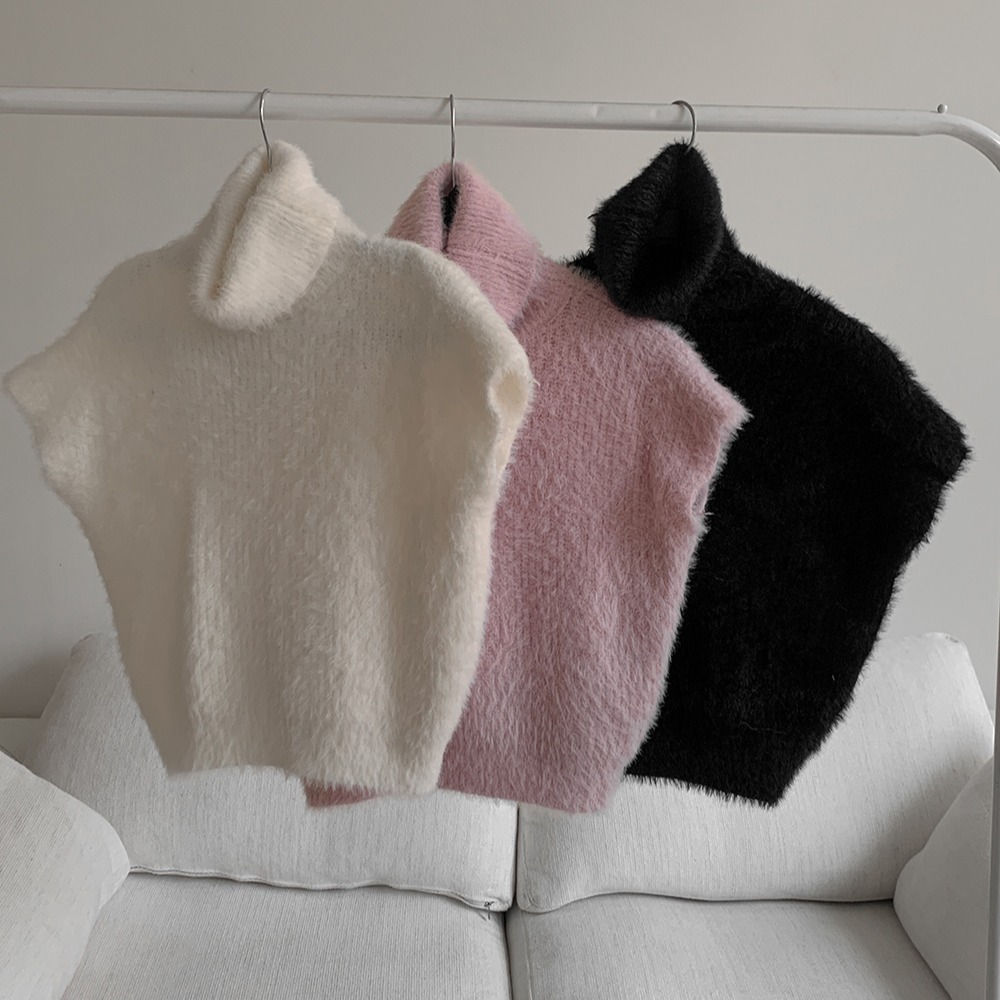 FA55886# 初春新品韩版高领貂毛修身短款无袖背心毛衣 服裝批發女裝批發服飾貨源
