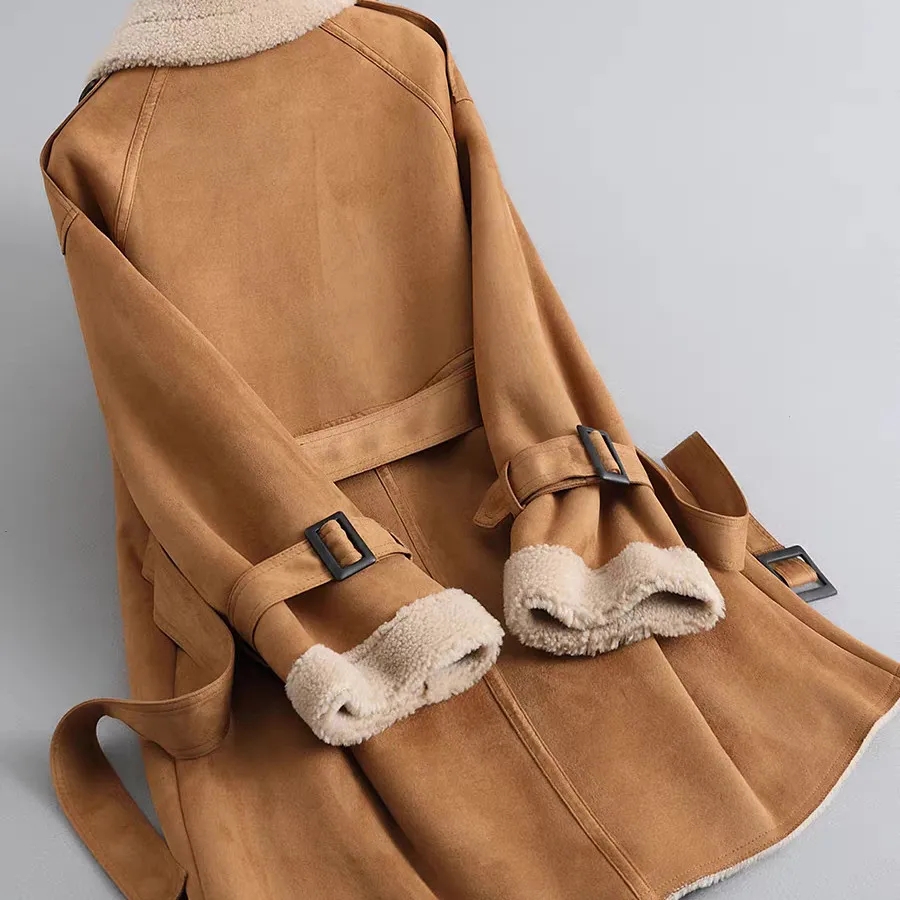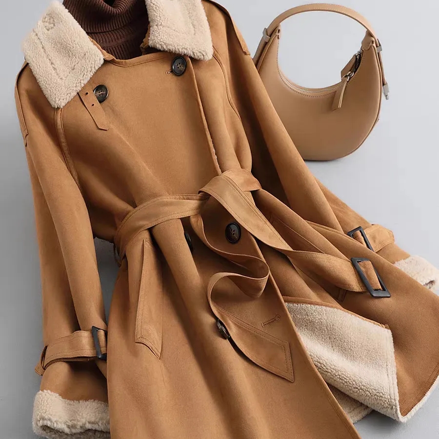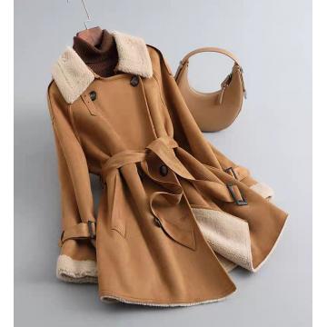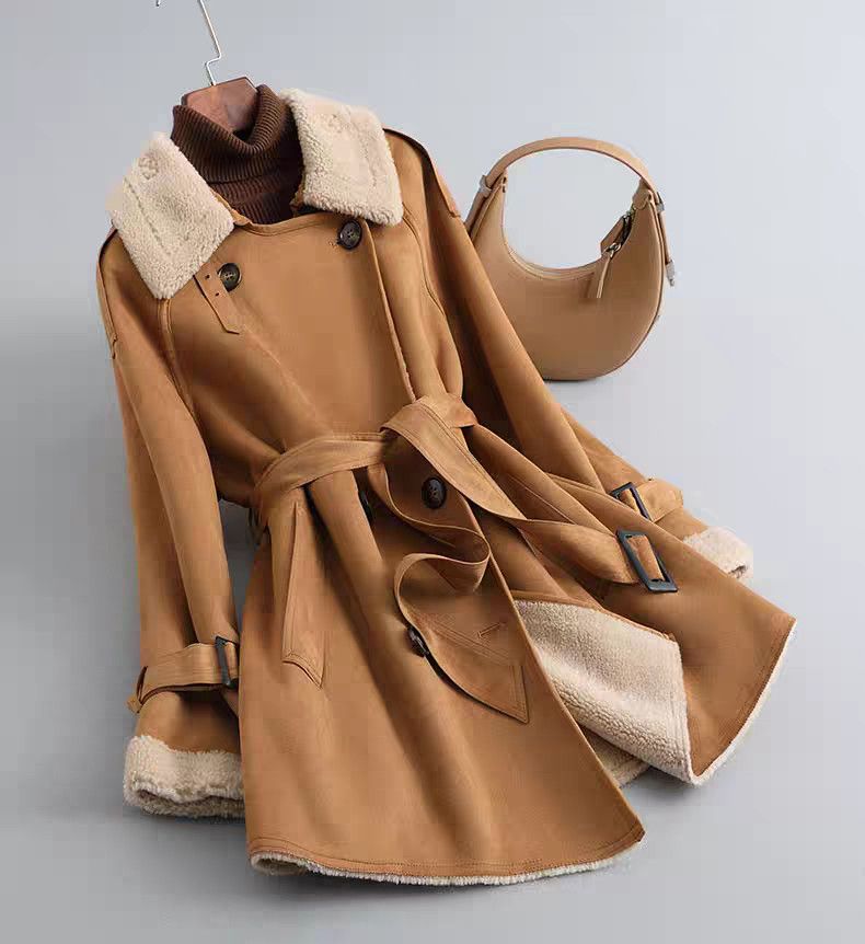 FA56000# 颗粒羊剪绒中长款外套女秋冬新款高级麂皮风衣羊羔毛皮毛一体大衣 服裝批發女裝批發服飾貨源