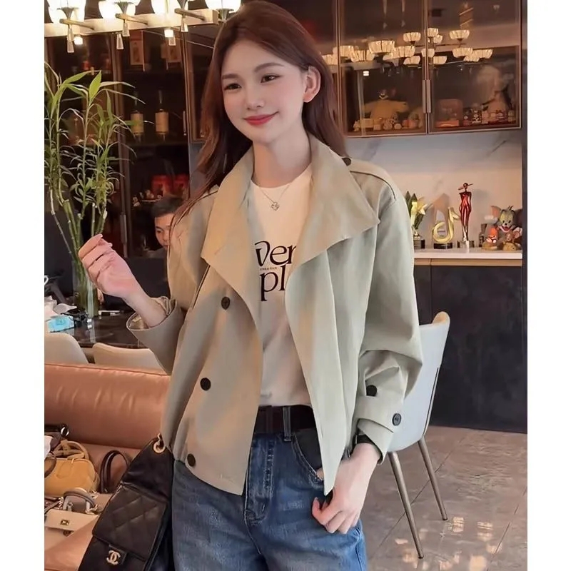 FA56008# 英伦风双排扣短款风衣外套女春秋新款休闲宽松小个子百搭上衣 服裝批發女裝批發服飾貨源