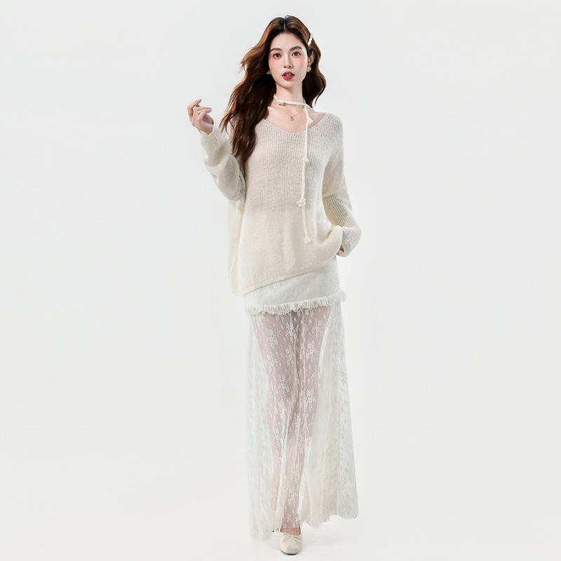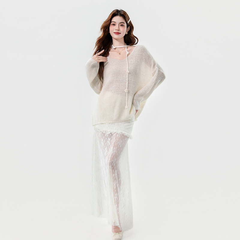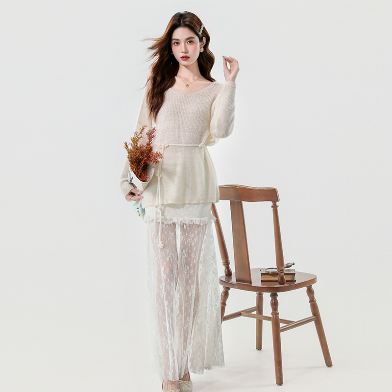 FA56031# 春季新款法式优雅气质精致小女人针织毛衣+蕾丝半身裙 服裝批發女裝批發服飾貨源