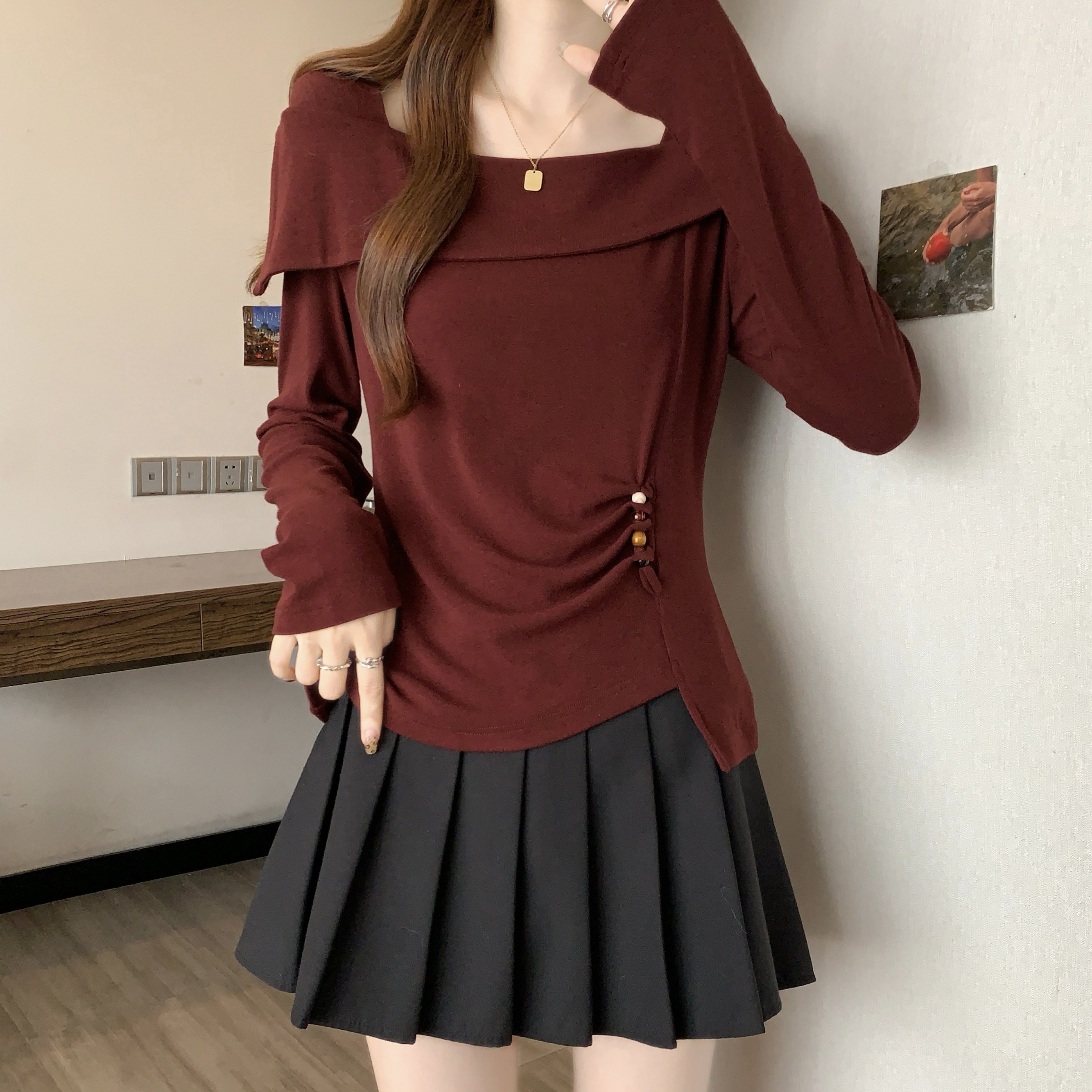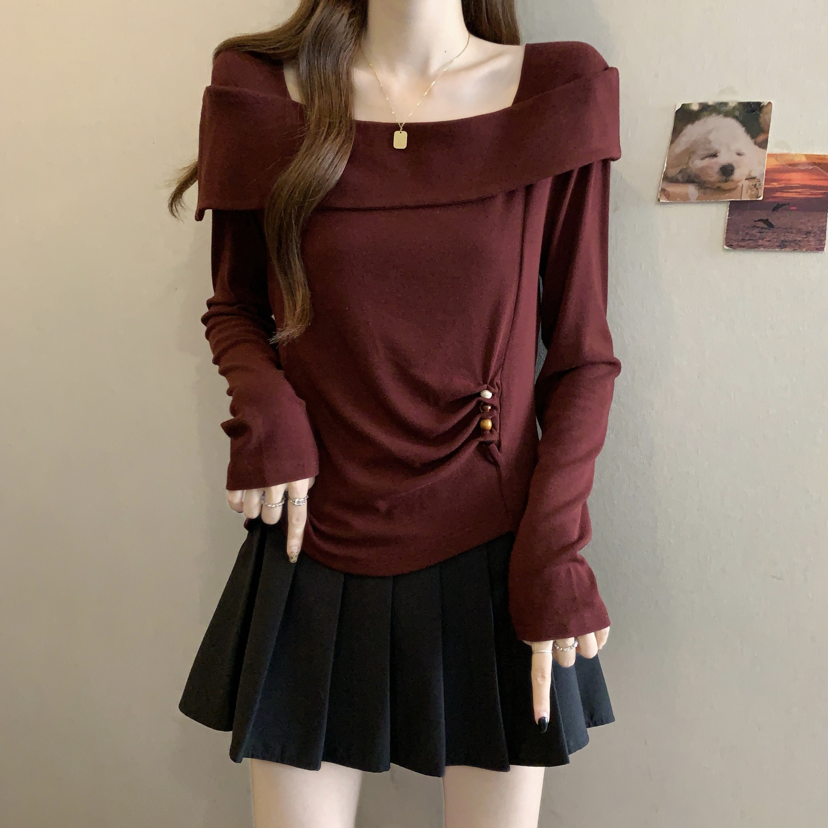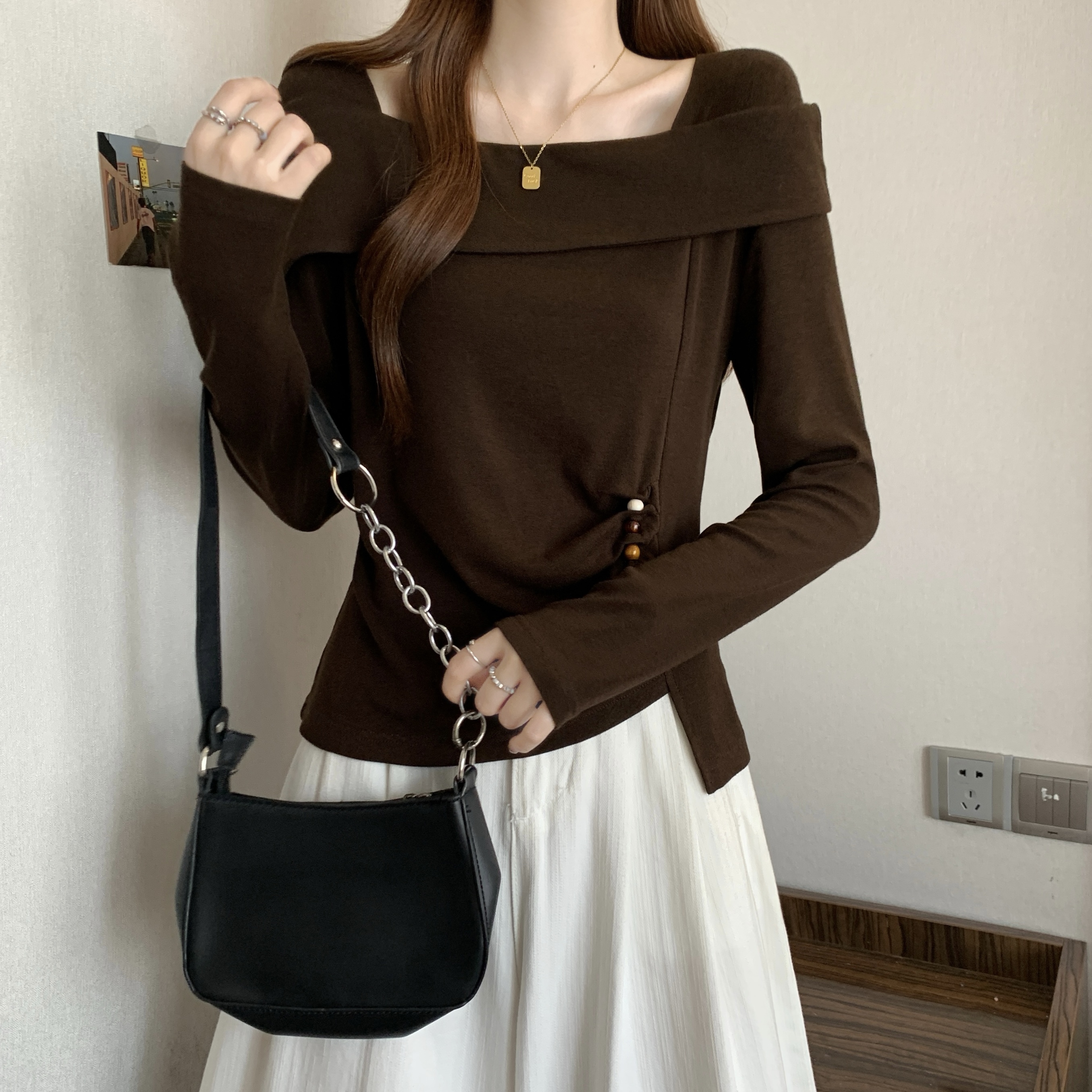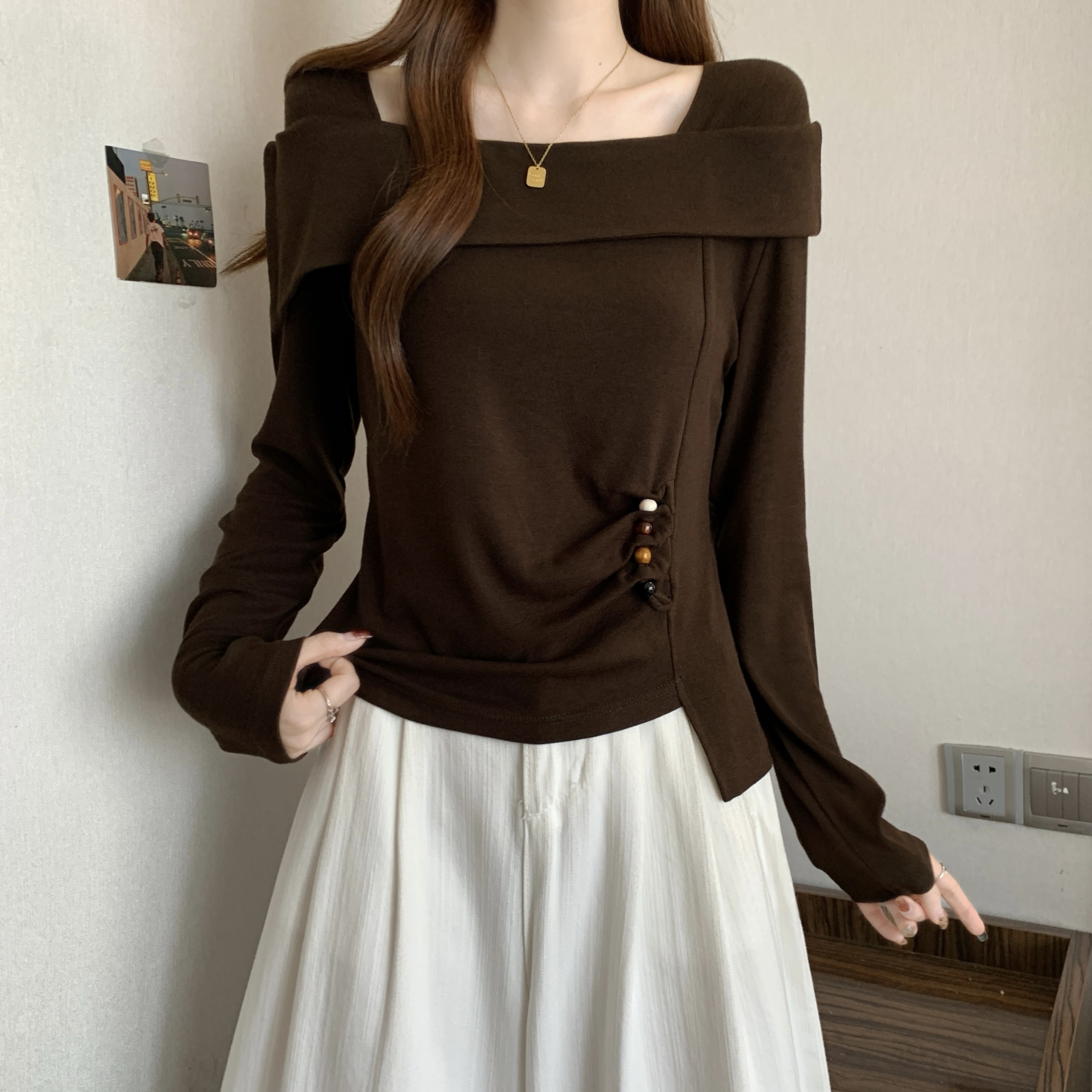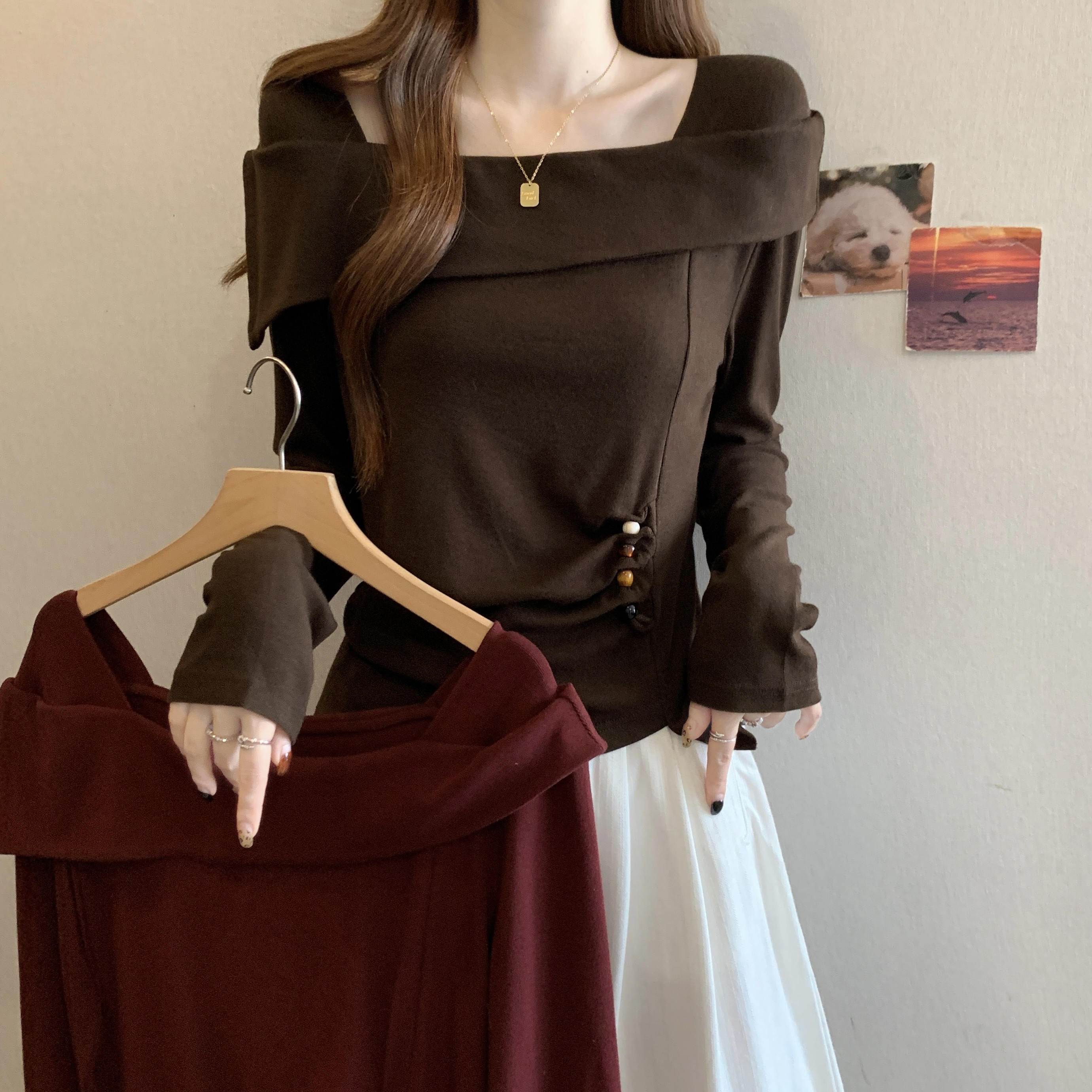 Home > 长袖T恤 > FA56042# 春款大码女装胖MM设计感纯棉气质一字肩不规则显瘦上衣 服裝批發女裝批發服飾貨源