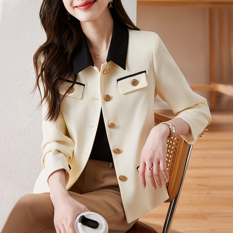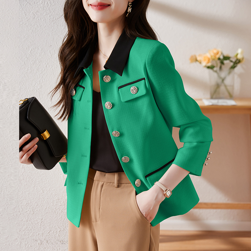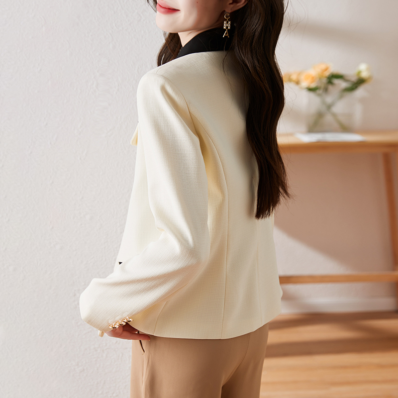 FA56074# 小香风短款西装外套女春秋撞色拼接高级感气质名媛小个子西服上衣 服裝批發女裝批發服飾貨源