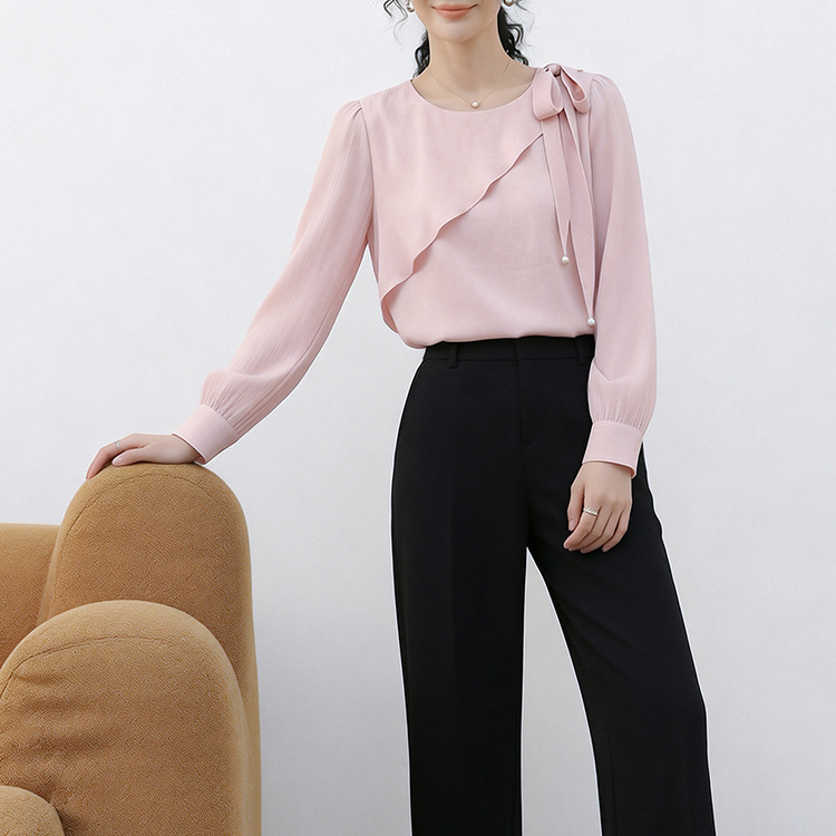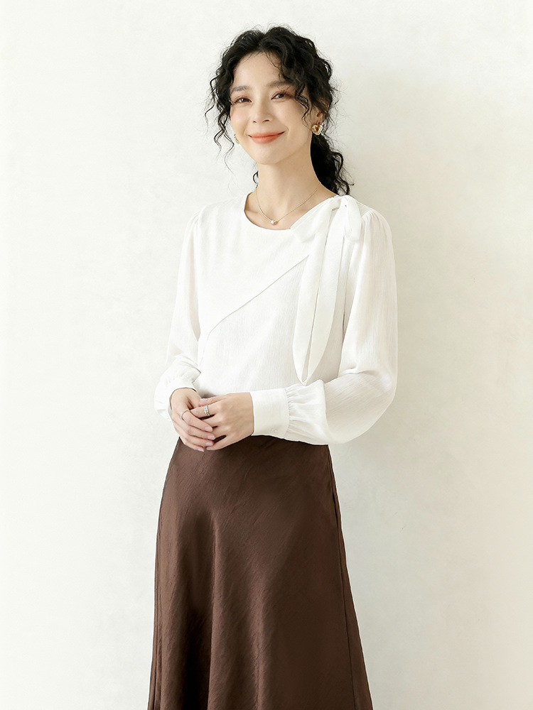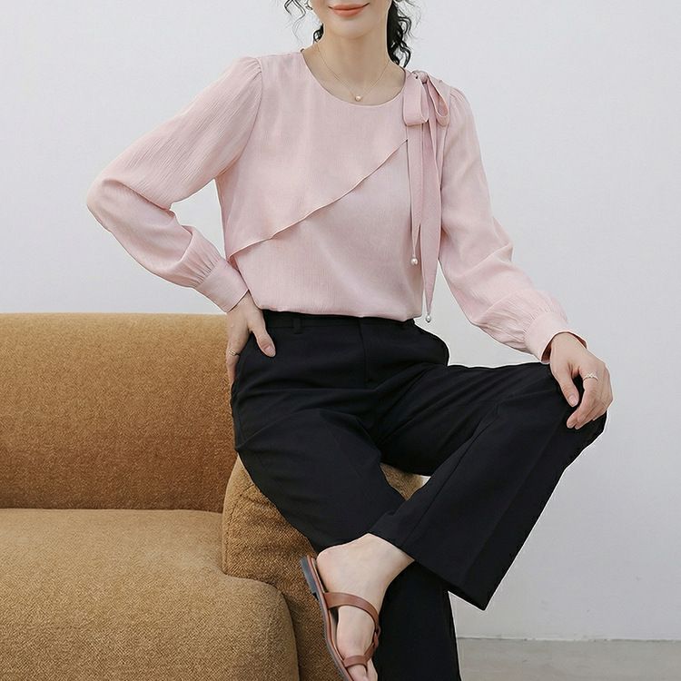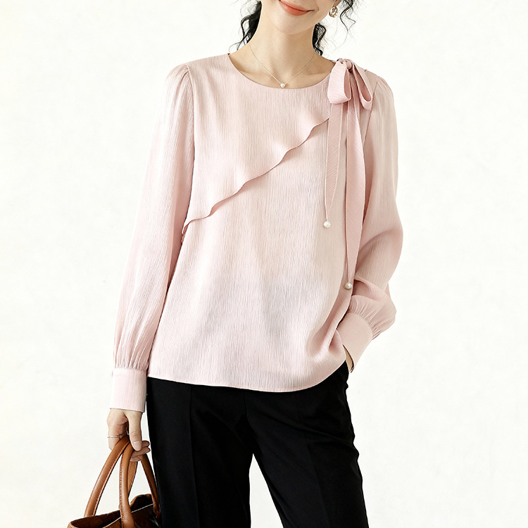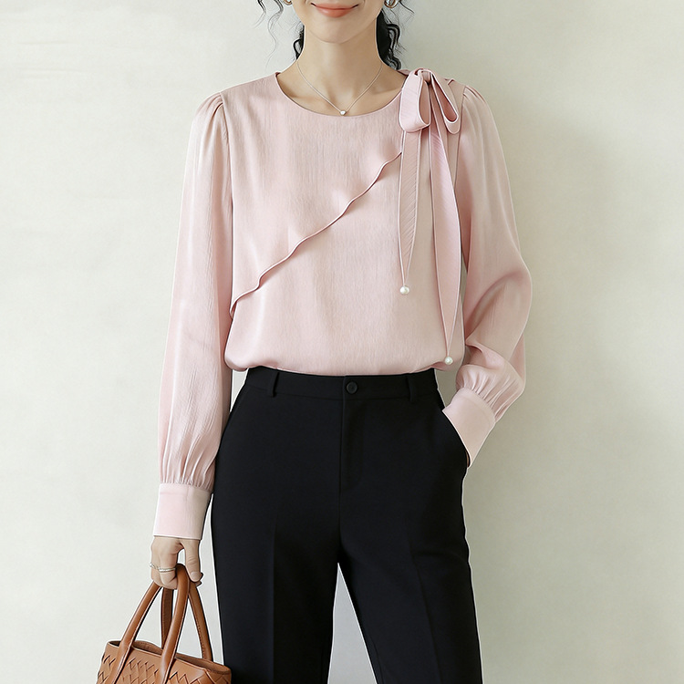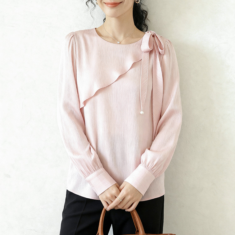 FA56176# 法式小众设计感不规则缎面长袖衬衫女春夏 服裝批發女裝批發服飾貨源
