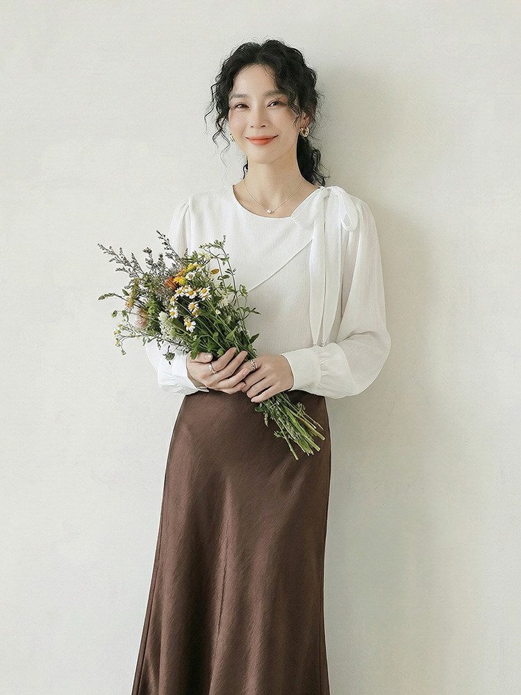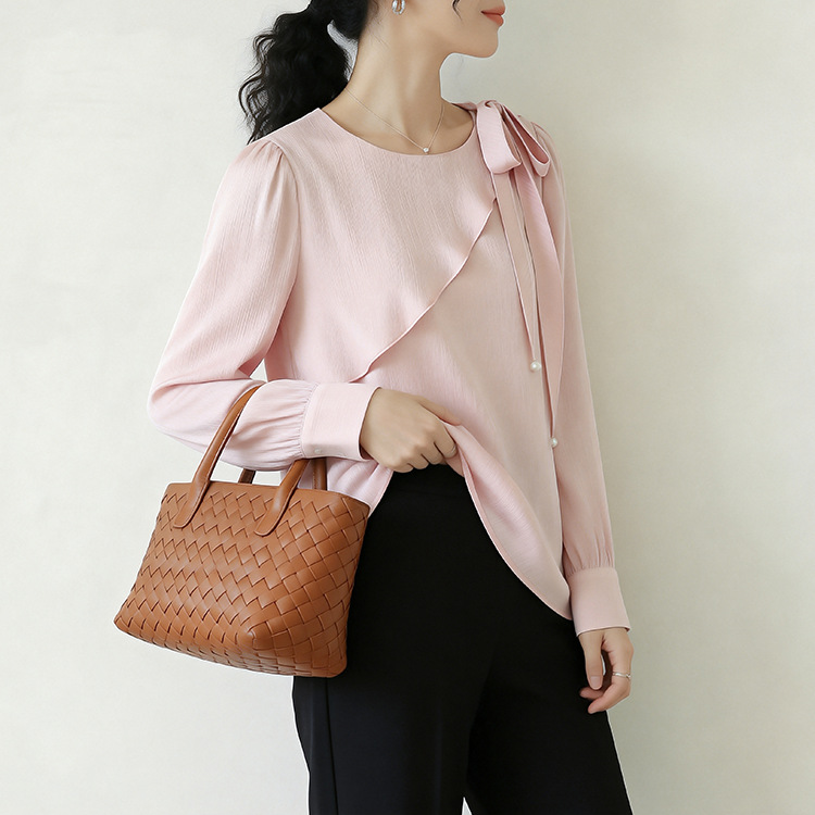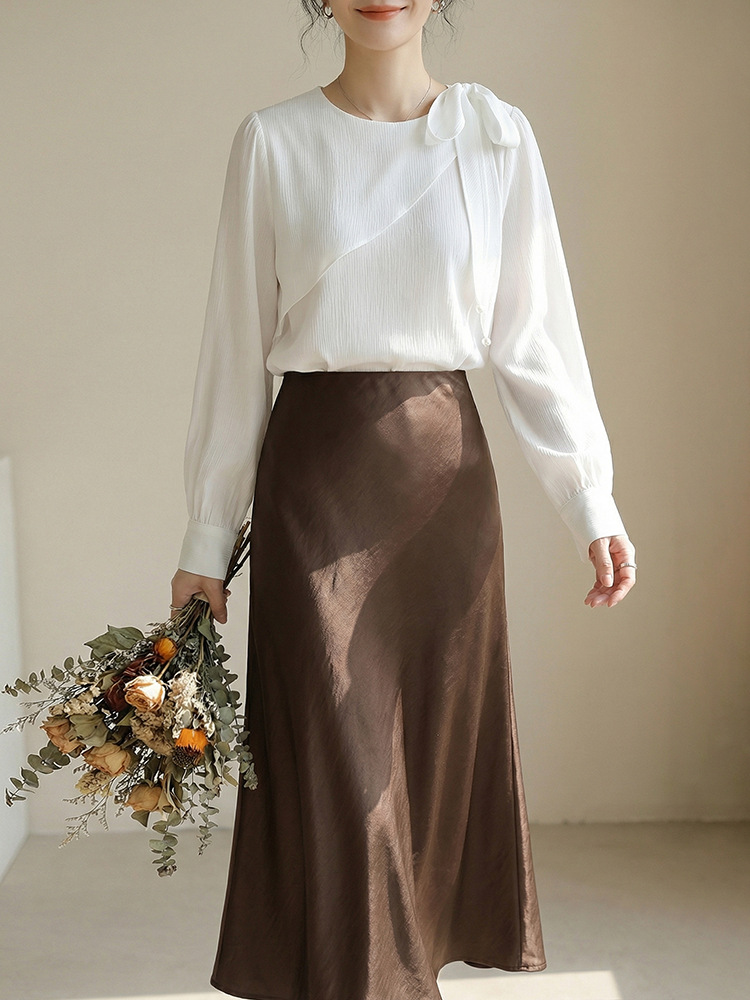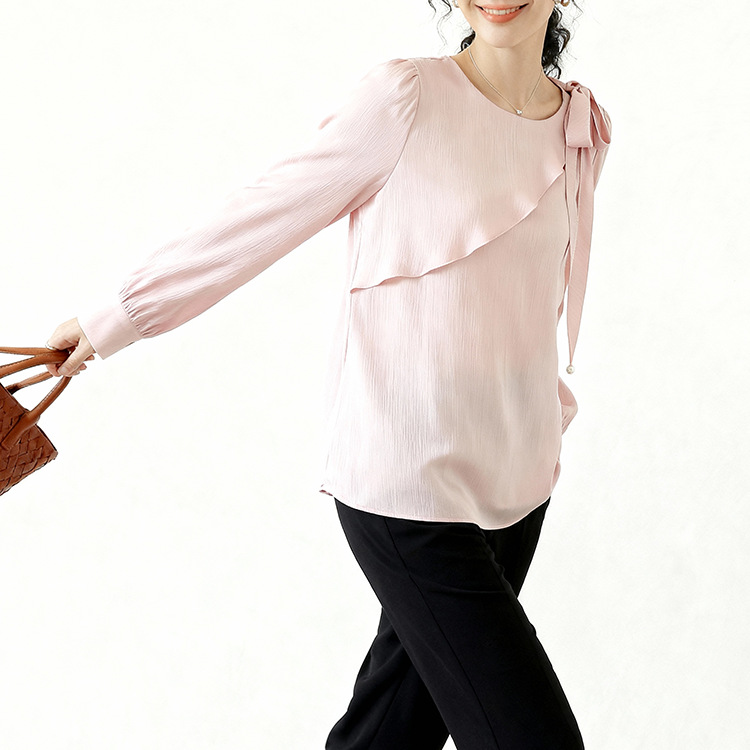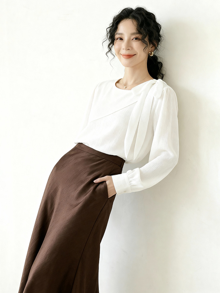 FA56176# 法式小众设计感不规则缎面长袖衬衫女春夏 服裝批發女裝批發服飾貨源