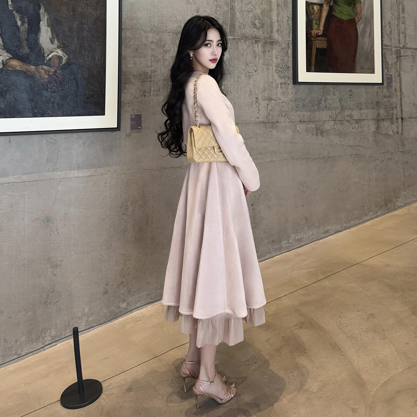 FA56404# 小香风粉色外套连衣裙套装女巨好看富家千金风高级感法式长裙 服裝批發女裝批發服飾貨源