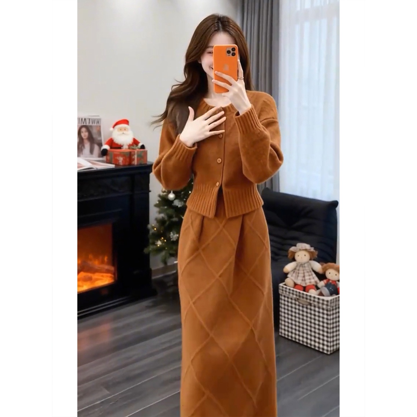 FA56407# 韩系高级感针织毛衣连衣裙子女秋冬季超火穿搭一整套装高级感 服裝批發女裝批發服飾貨源