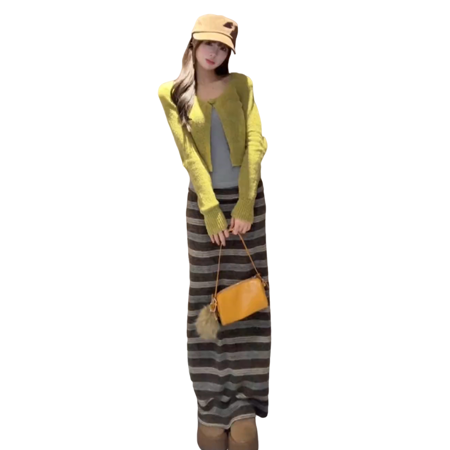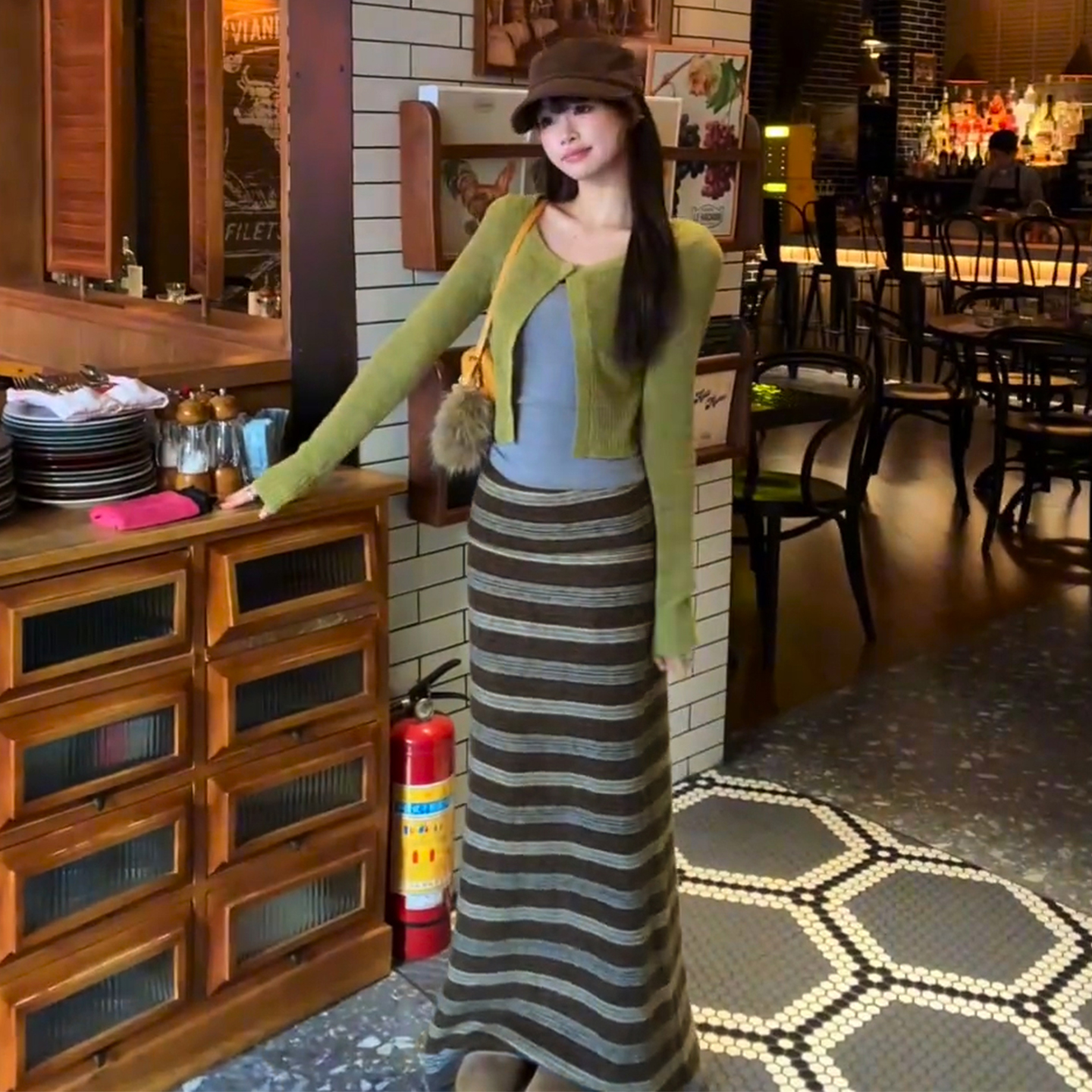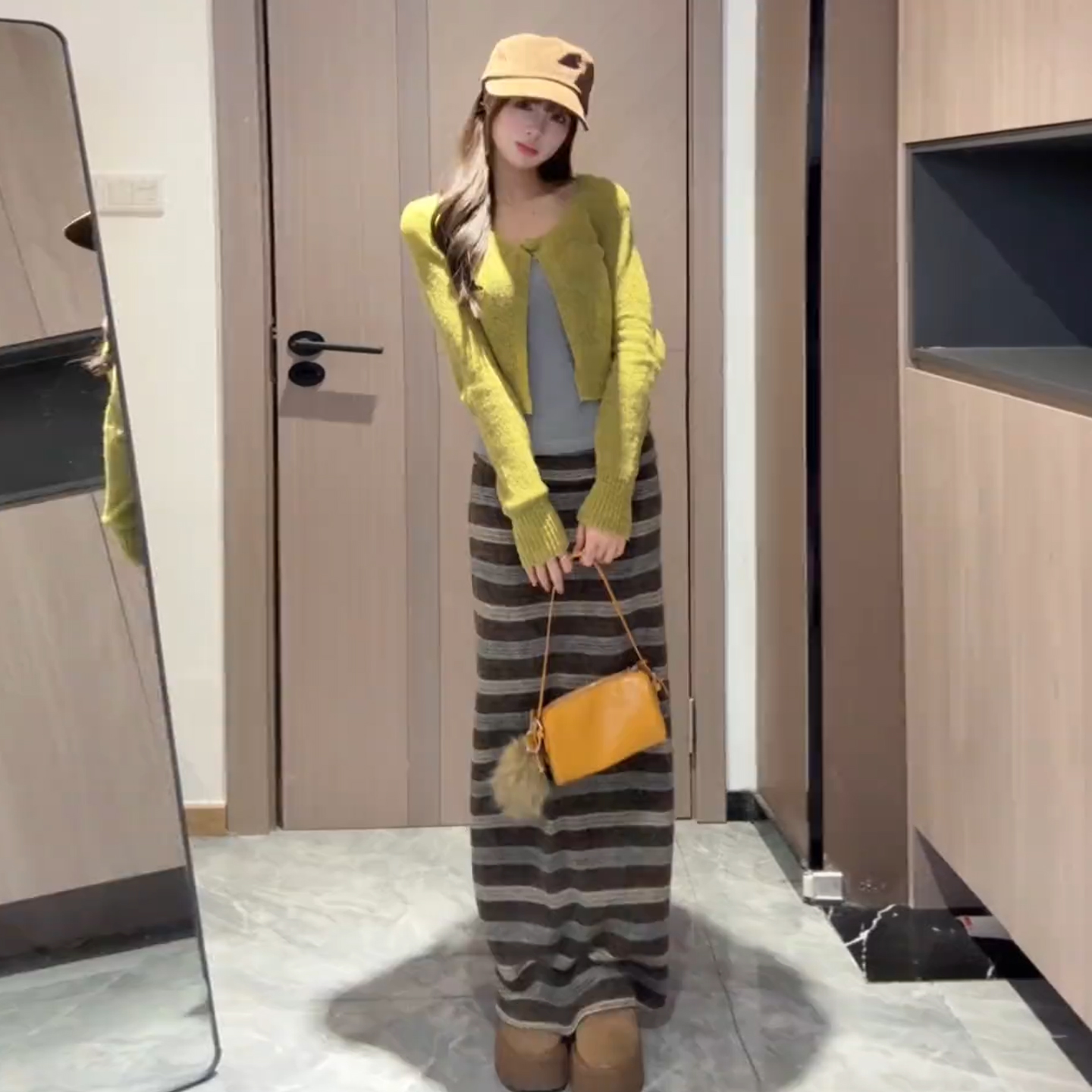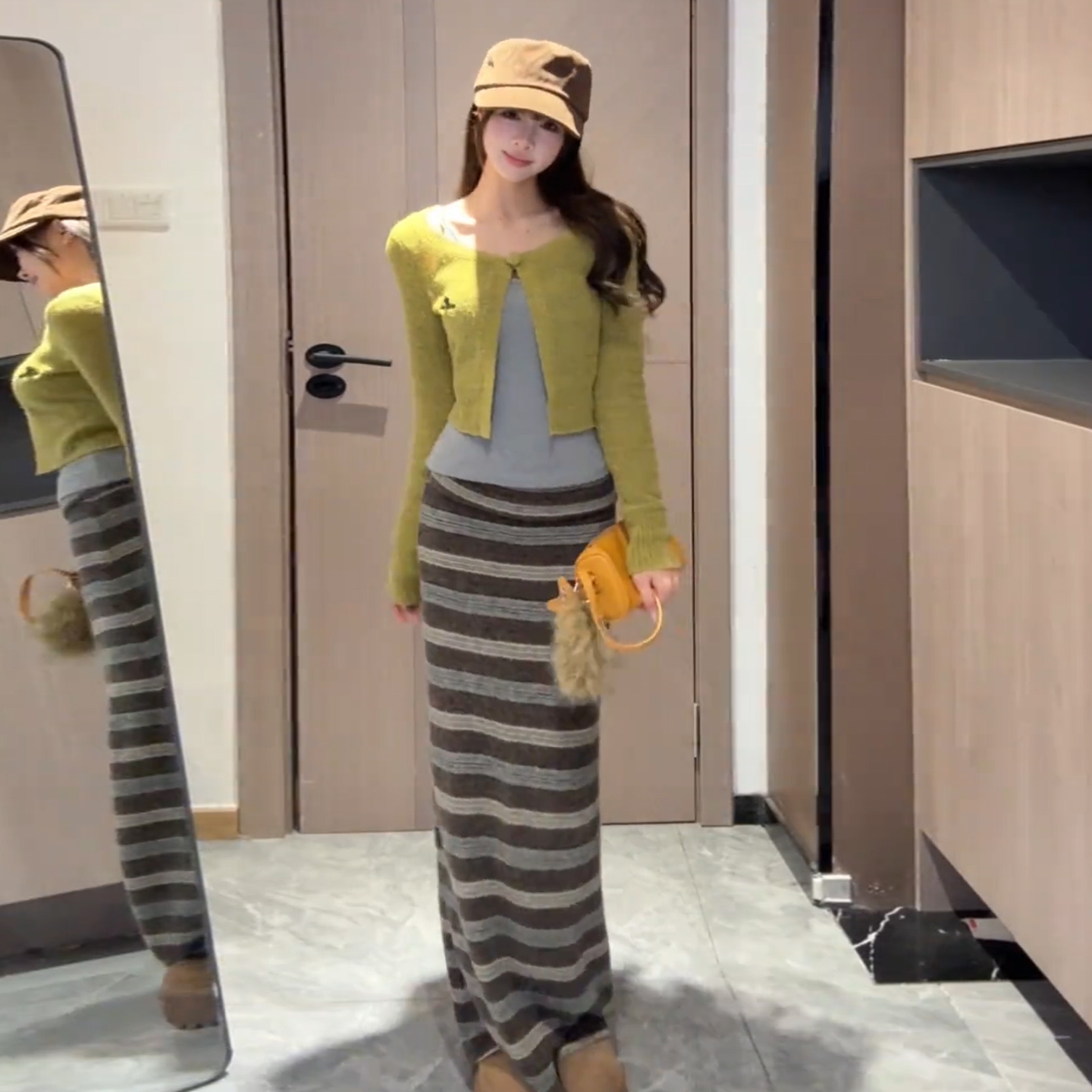 咖色条纹半裙