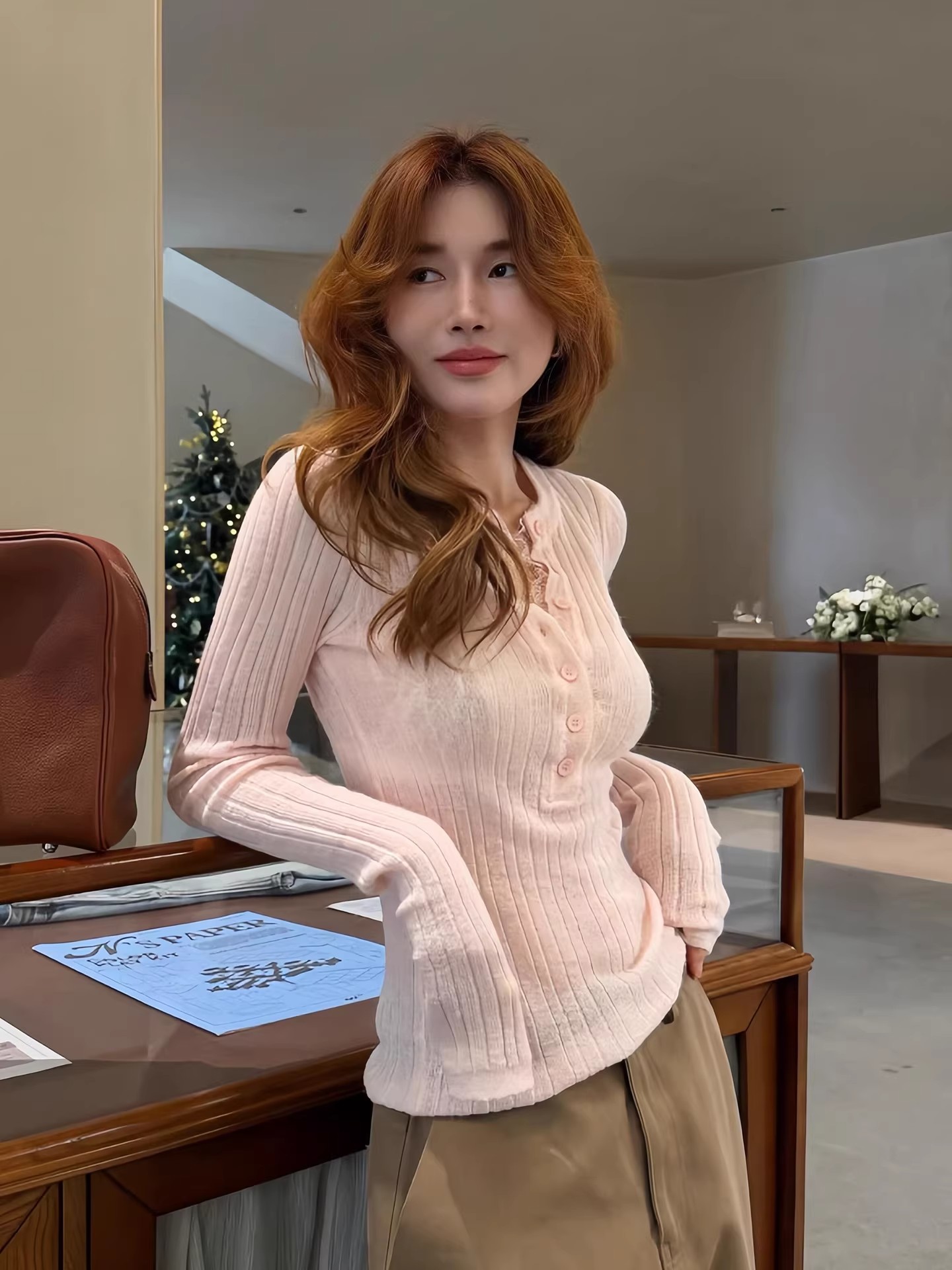 FA56464# 韩系粉色半开领针织打底衫女秋冬季炸街独特漂亮内搭修身短款上衣 服裝批發女裝批發服飾貨源
