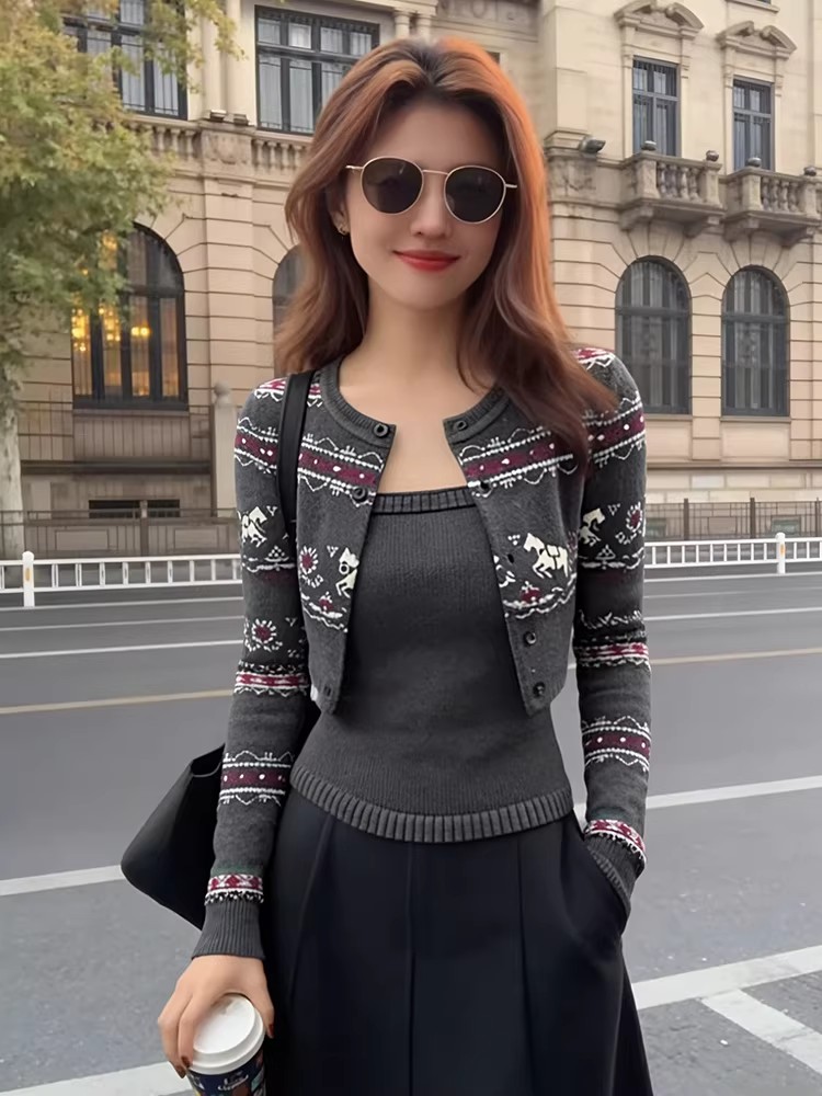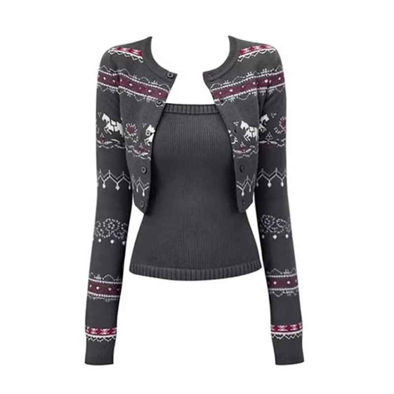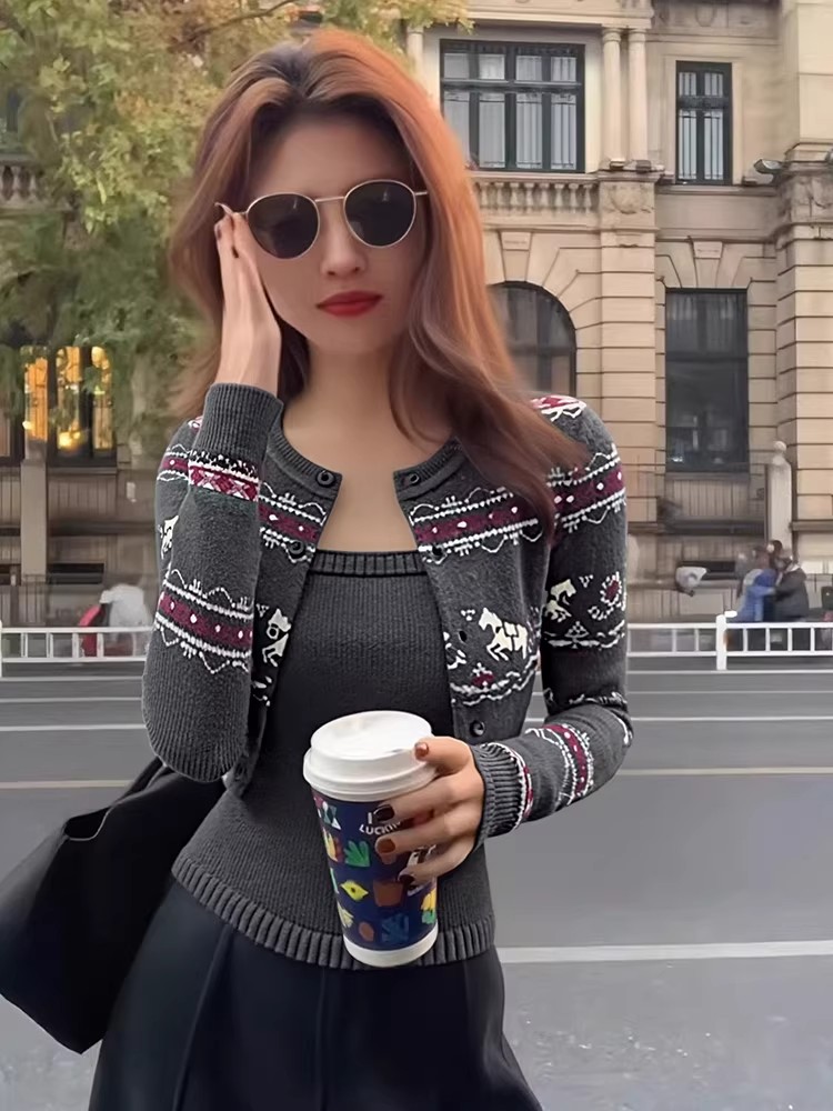 Home > 毛衣、针织衫 > FA56465# 小个子韩系灰色提花针织开衫女秋冬毛衣外套外搭软糯加厚短款上衣 服裝批發女裝批發服飾貨源