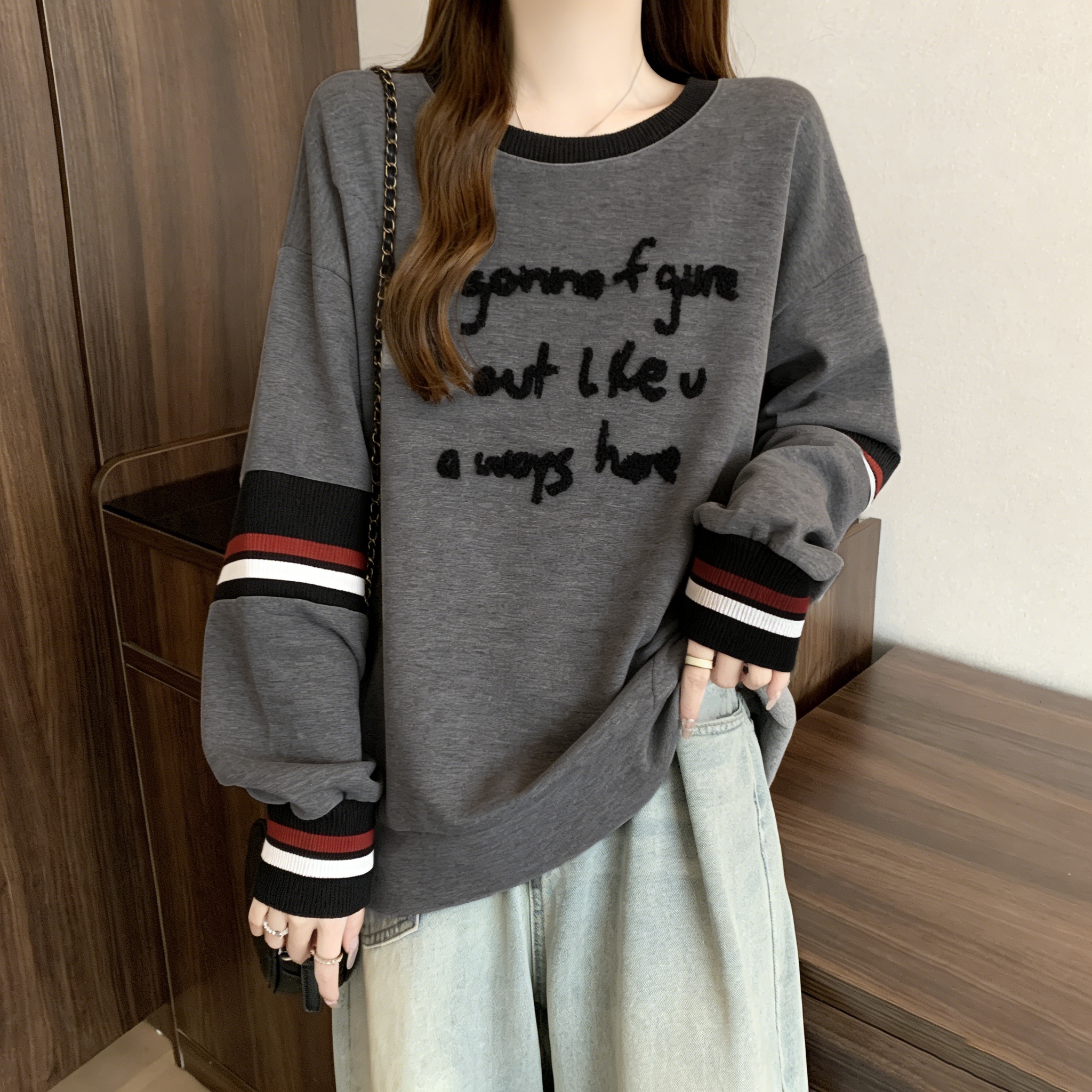 FA56501# 高级感灰色女士卫衣外套秋季新款大码胖mm宽松显瘦上衣爆款 服裝批發女裝批發服飾貨源