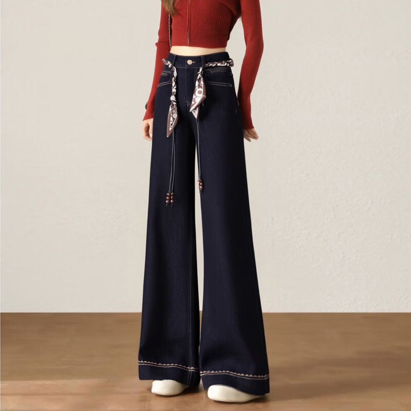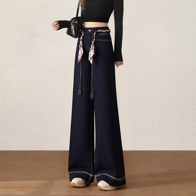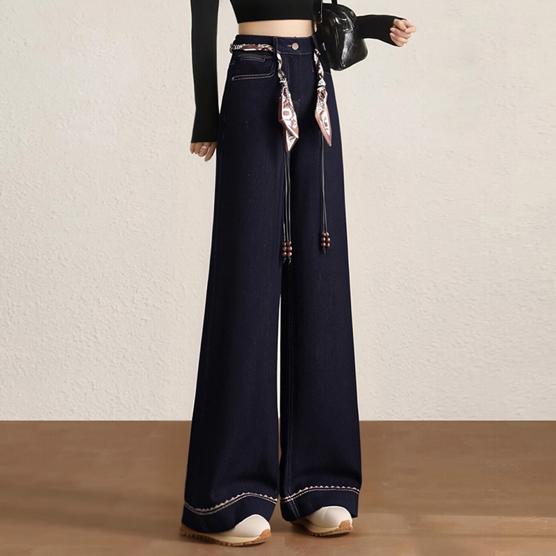 FA56504# 复古深蓝色胖mm直筒牛仔裤女装春秋显高显瘦大码高级感阔腿裤 服裝批發女裝批發服飾貨源