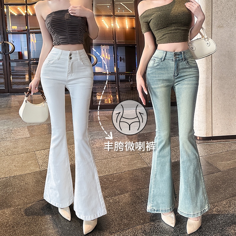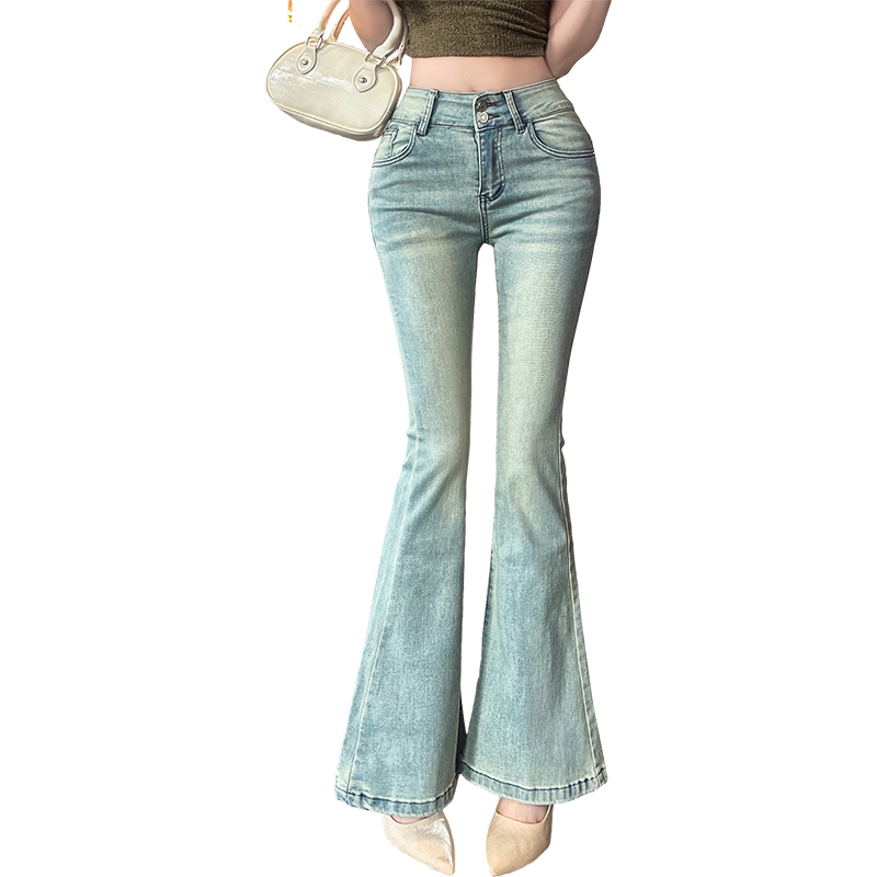 FA56525# 春季浅蓝色高腰丰胯提臀微喇牛仔裤女修身拖地喇叭裤 服裝批發女裝批發服飾貨源