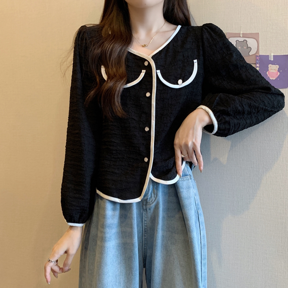 Home > 长袖雪纺衫、衬衫、上衣 > FA56532# 早春大码女装胖MM法式小众设计感撞色衬衫上衣 服裝批發女裝批發服飾貨源