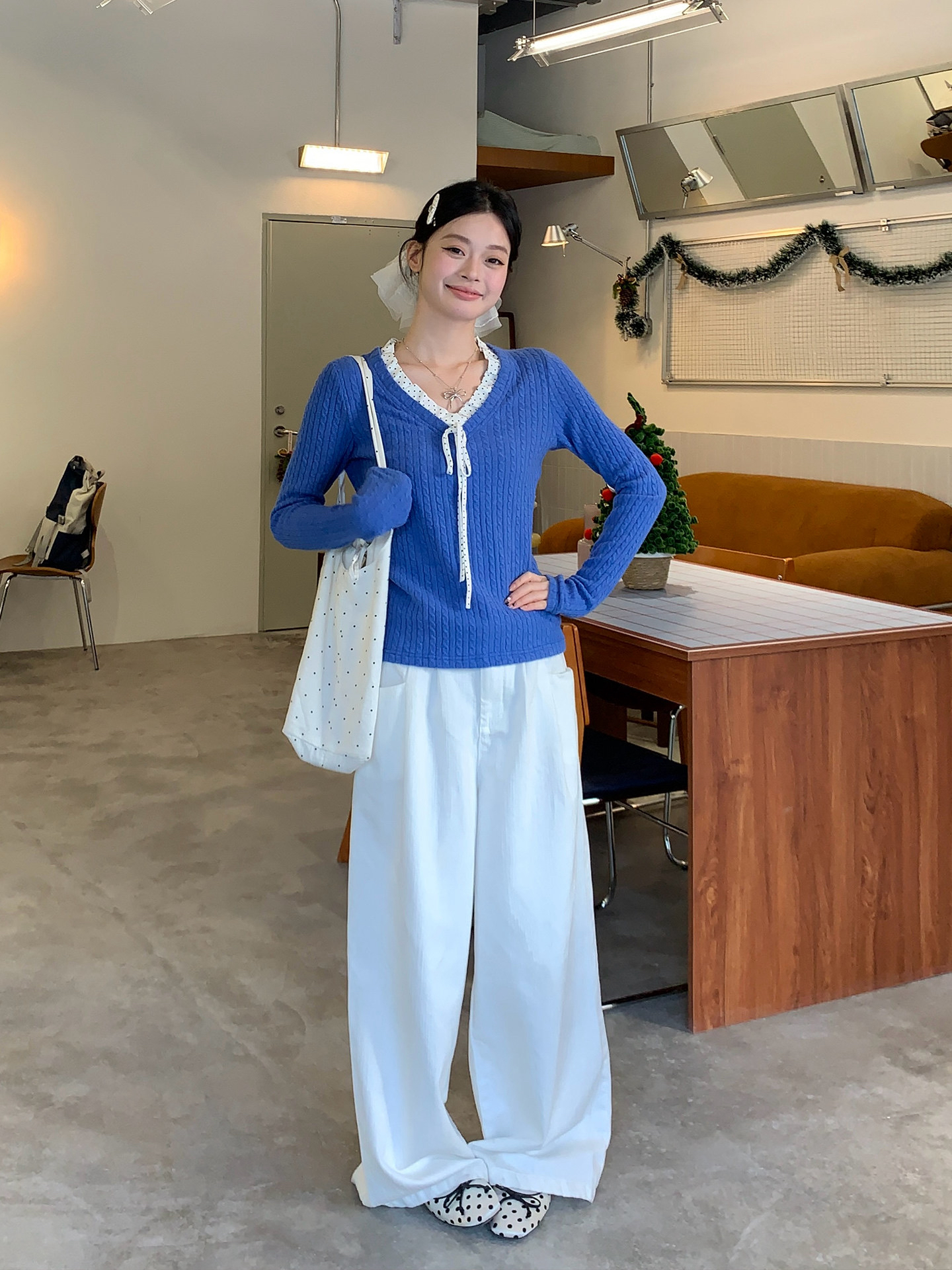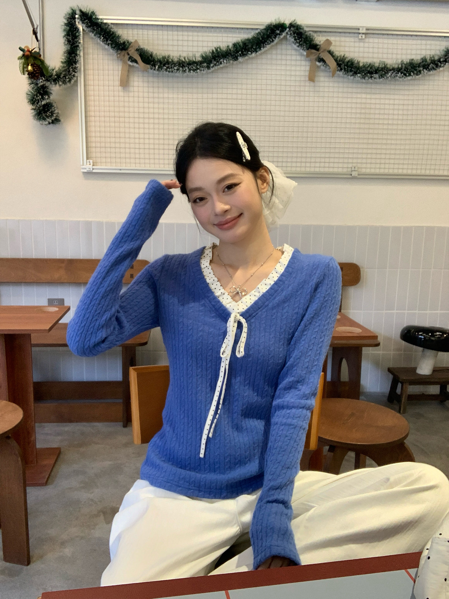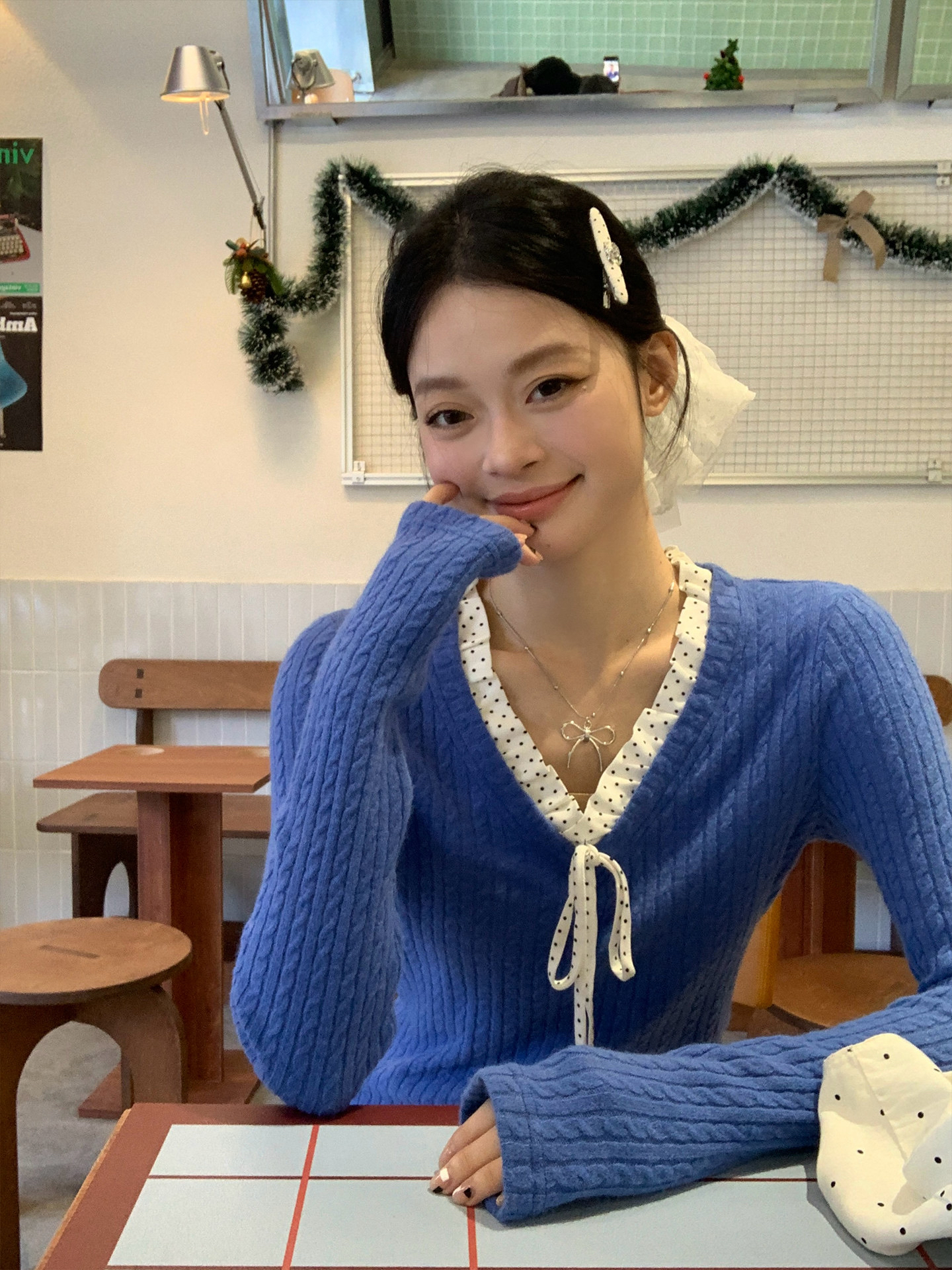 FA56566# 原版麻花V领针织衫女春季新款修身假两件毛衣内搭上衣 服裝批發女裝批發服飾貨源