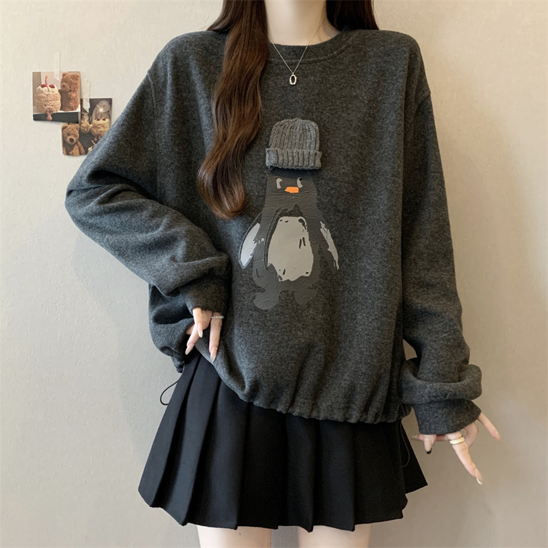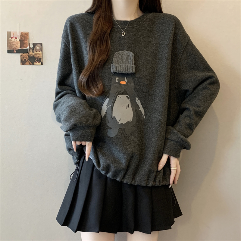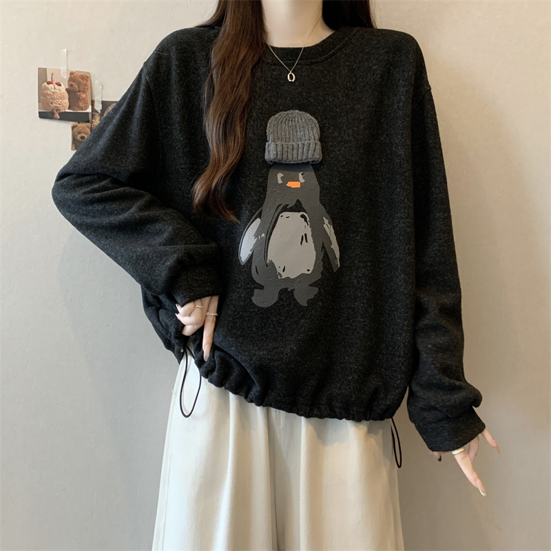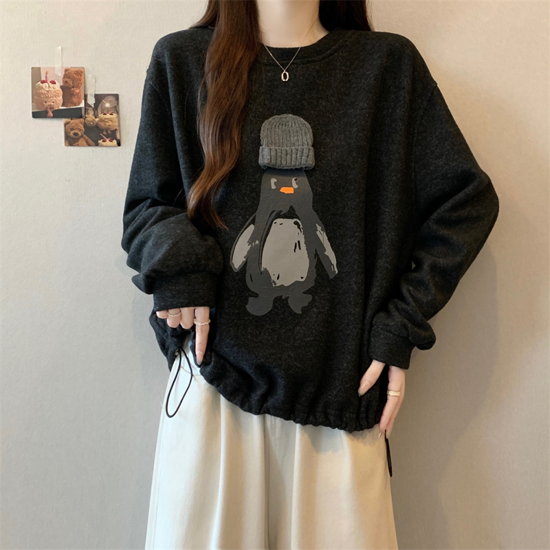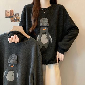 FA56664# 大码胖MM新款设计感减龄企鹅套头卫衣遮肉显瘦上衣外套 服裝批發女裝批發服飾貨源