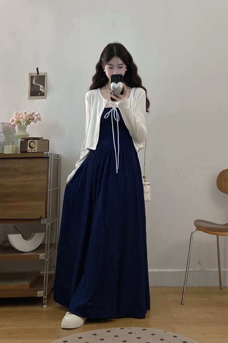 FA56673# 大码女装胖mm春季高级感连衣裙套装蕾丝吊带裙针织开衫两件套 服裝批發女裝批發服飾貨源