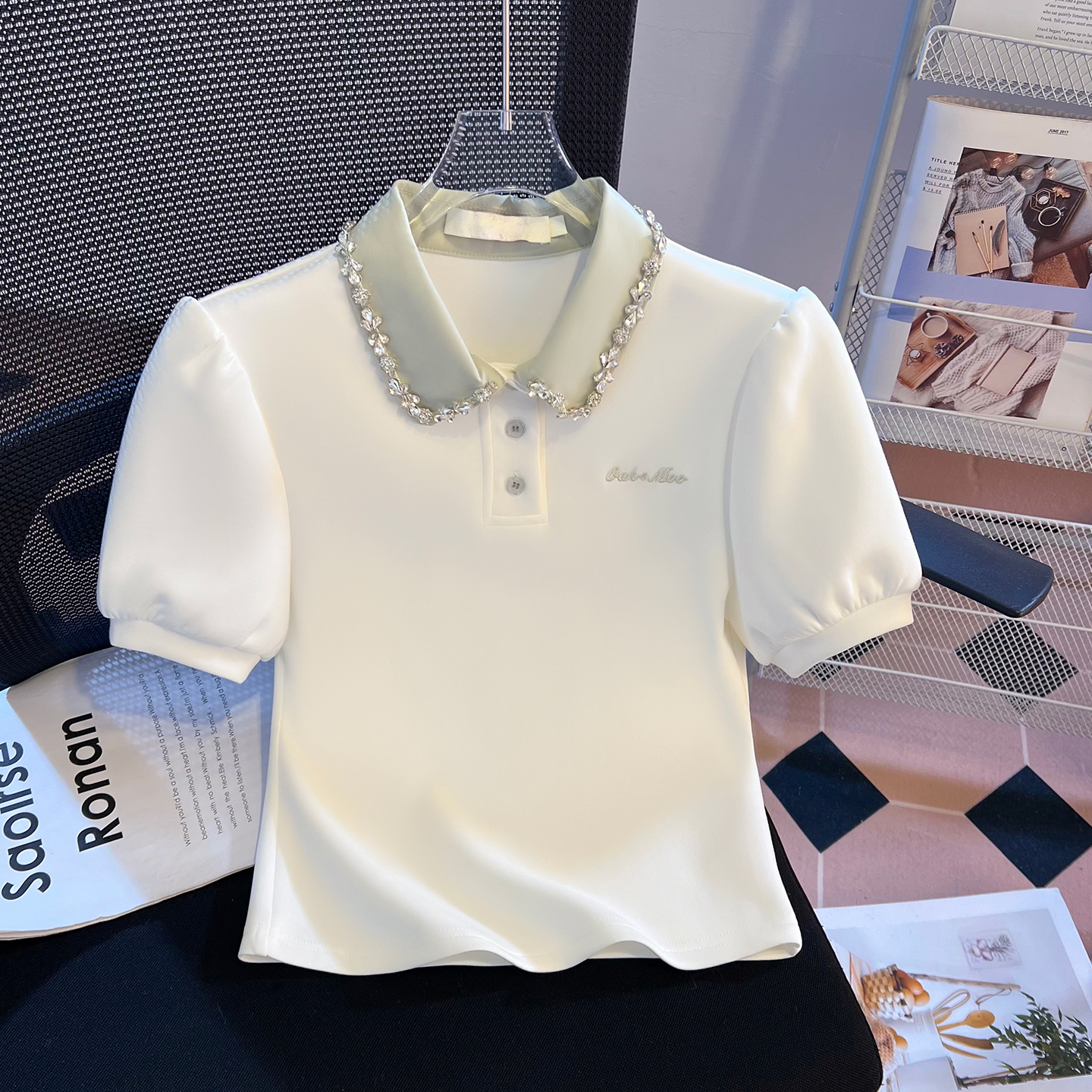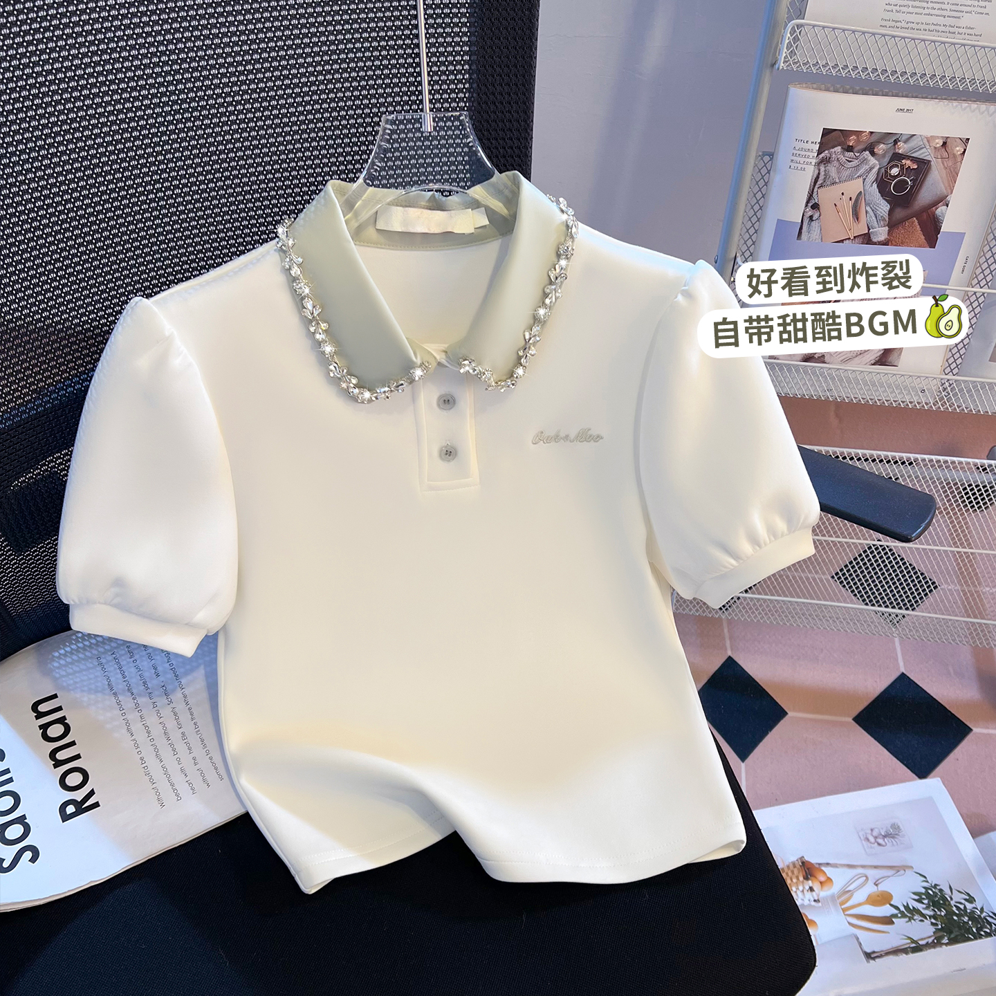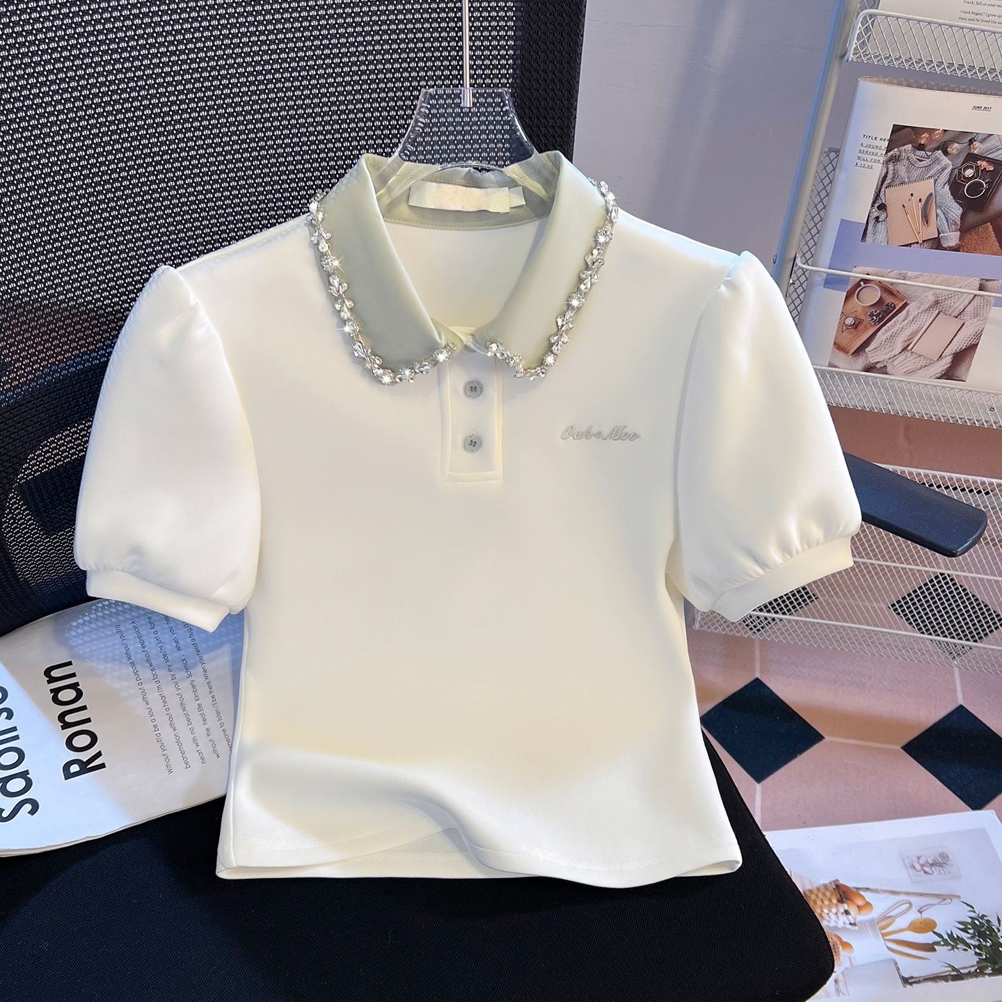 BY10385# 重工拼接假两件polo领短袖T恤女新款学院风小个子短上衣 服裝批發女裝批發服飾貨源