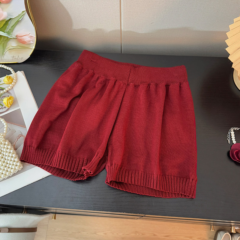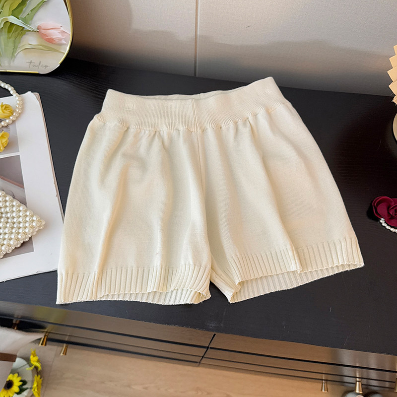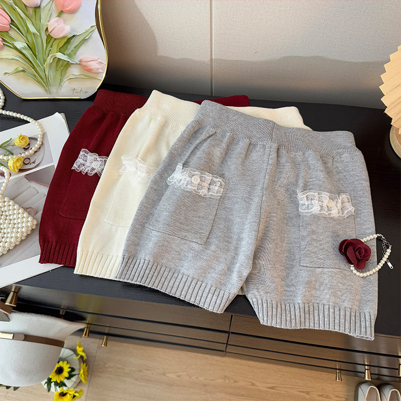 BY10933# 韩系辣妹纯欲风蕾丝拼接针织短裤女夏高腰A字宽松阔腿休闲裤 服裝批發女裝批發服飾貨源