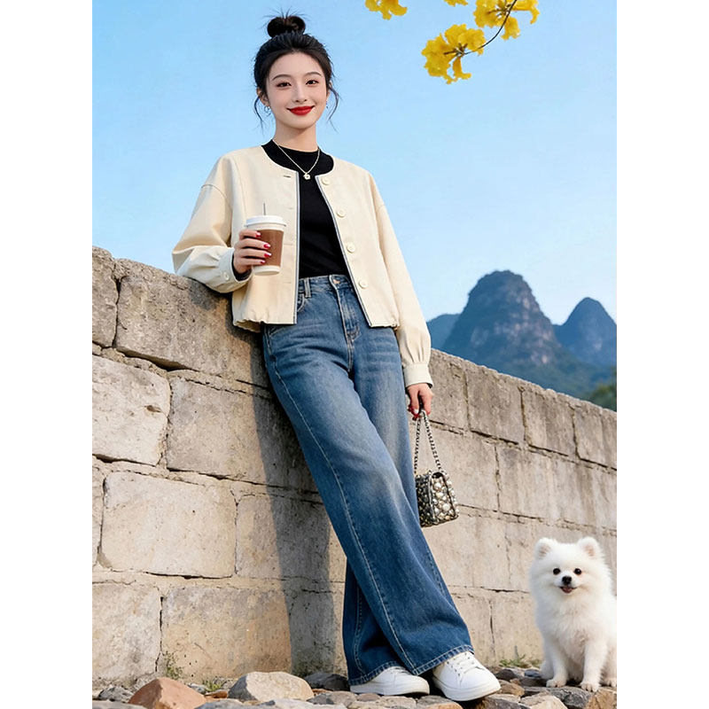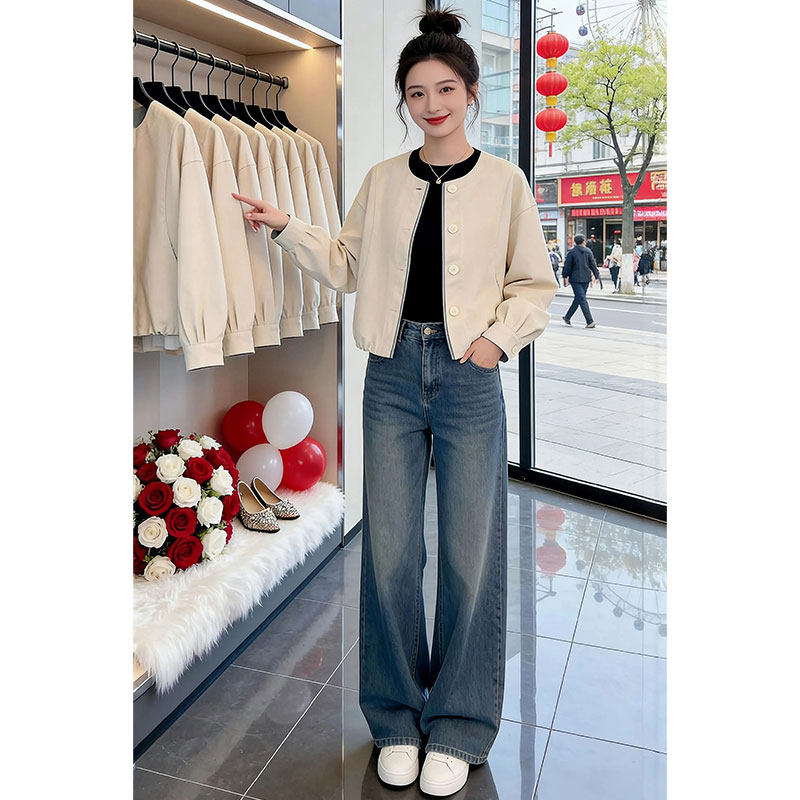 BY11791# 伦敦街头宽松百搭气质慵懒风外套女春季新款拼接上衣 服裝批發女裝批發服飾貨源