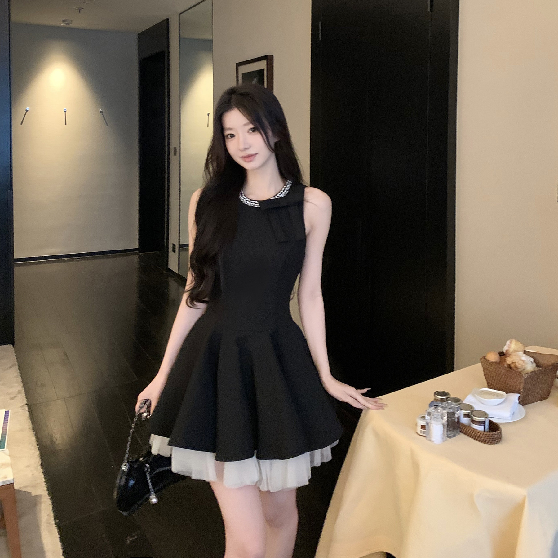 BY12188# 千金风小黑裙连衣裙女夏季高级感生日party小礼裙显瘦无袖 服裝批發女裝批發服飾貨源