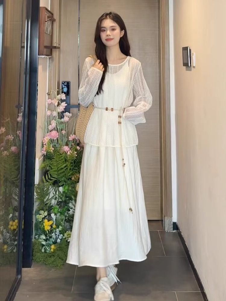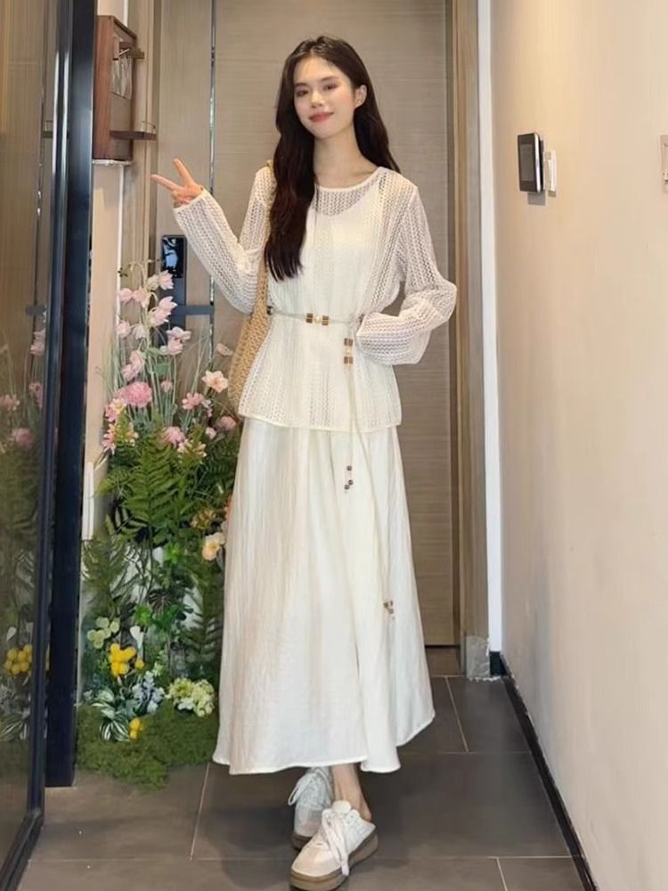 BY12189# 白色吊带连衣裙子女夏季新款温柔风气质绝美穿搭海边度假长裙 服裝批發女裝批發服飾貨源