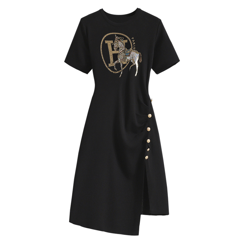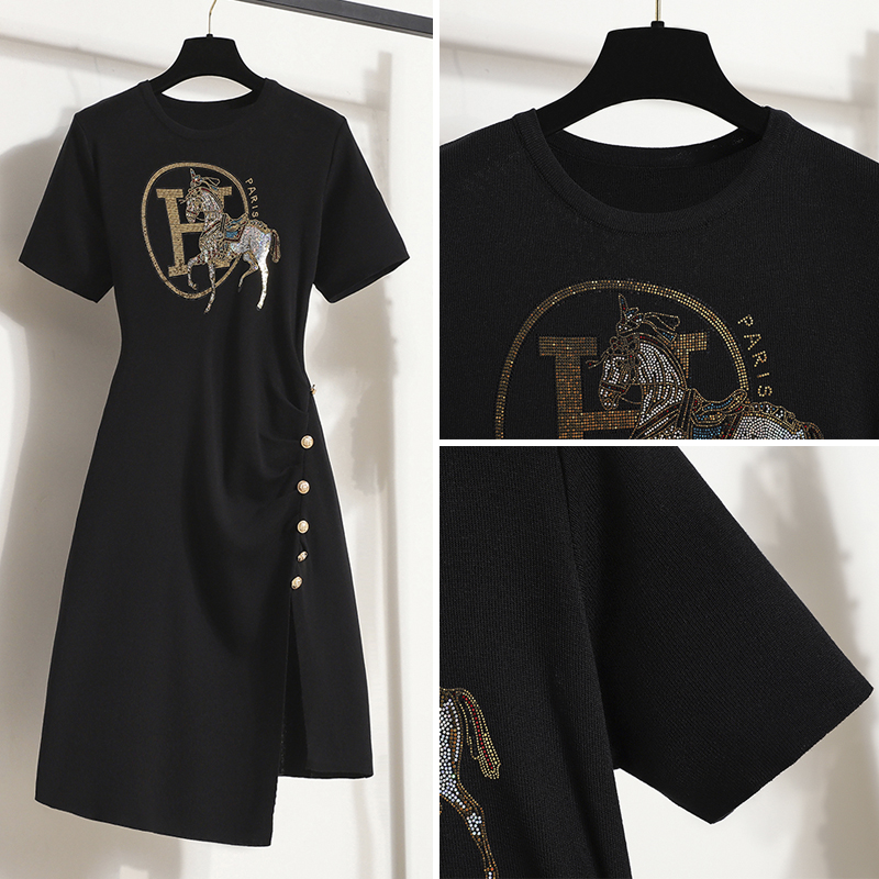 BY12206# 大码女装夏法式赫本风不规则针织连衣裙女神范小心机裙子 服裝批發女裝批發服飾貨源