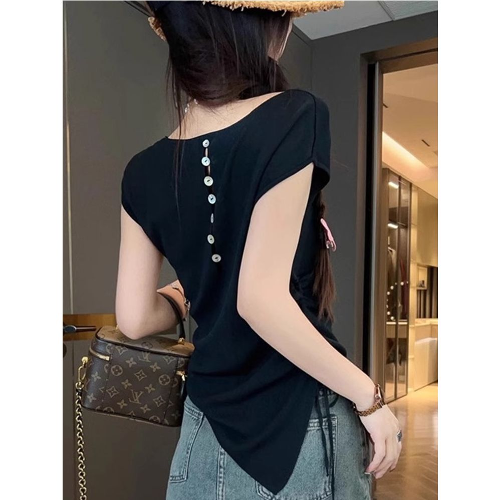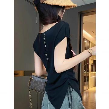BY12228# 不规则短袖t恤女新款夏季洋气时髦独特漂亮后背镂空爆款上衣 服裝批發女裝批發服飾貨源