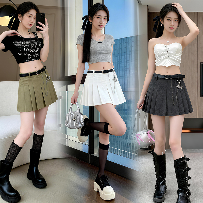 BY12786# 百褶裙半身裙新款高腰牛仔裙短裙A字裙包臀裙裙子半裙潮 服裝批發女裝批發服飾貨源