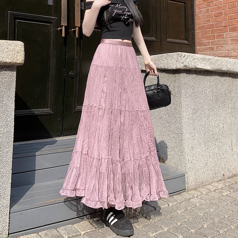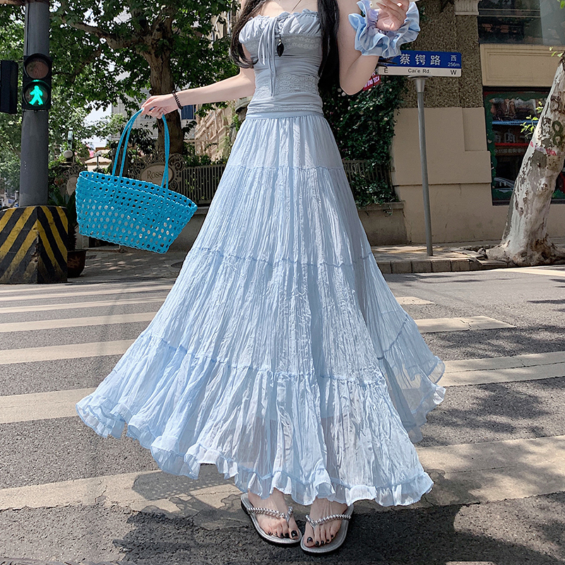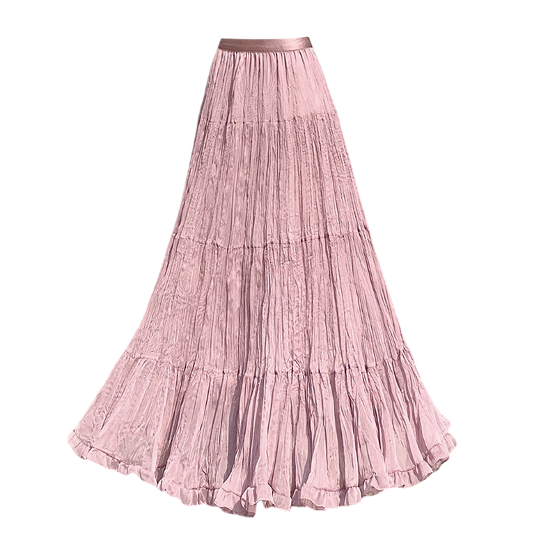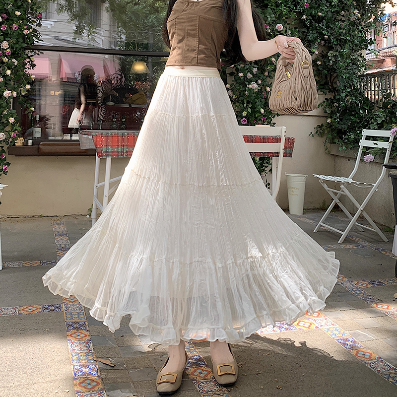 BY12817# 夏法式温柔风飘逸超仙褶皱大裙摆中长显瘦半身裙a字伞裙 服裝批發女裝批發服飾貨源