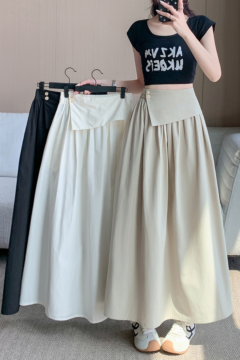 BY13451# 不规则褶皱半身裙女夏季新款气质收腰遮胯显瘦大裙摆A字长裙 服裝批發女裝批發服飾貨源