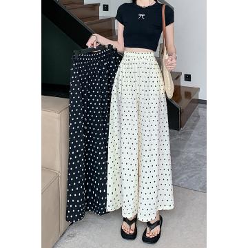 BY13452# 杏色圆点阔腿山本裙裤女夏季薄款新款高腰波点休闲裤九分裤裙 服裝批發女裝批發服飾貨源
