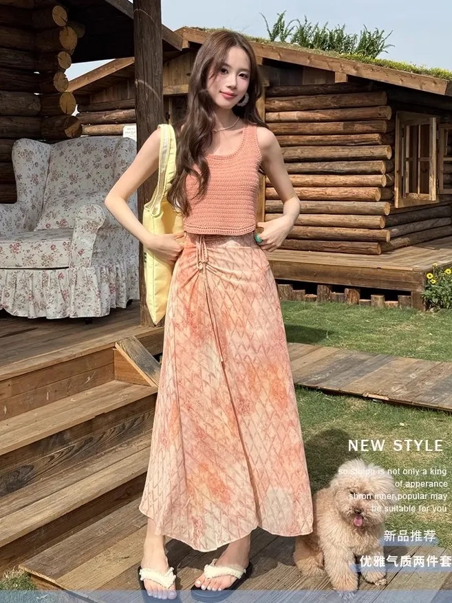 Home > 短袖连衣裙、夜店装 > BY13482# 夏季新款超火夏装五一穿搭一整套女夏针织上衣碎花半身裙套装 服裝批發女裝批發服飾貨源