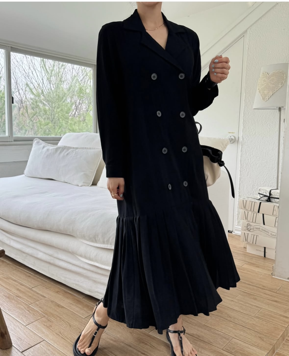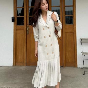 BY13488# 法式优雅百褶西装式长款连衣裙 服裝批發女裝批發服飾貨源