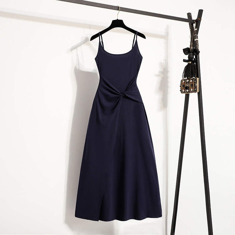 BY13578# 大码女装夏新款纽结腰精裙短袖连衣裙收腰显瘦吊带连衣裙 服裝批發女裝批發服飾貨源