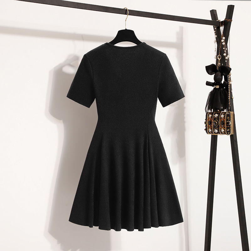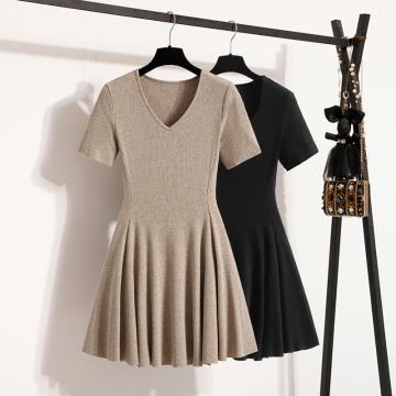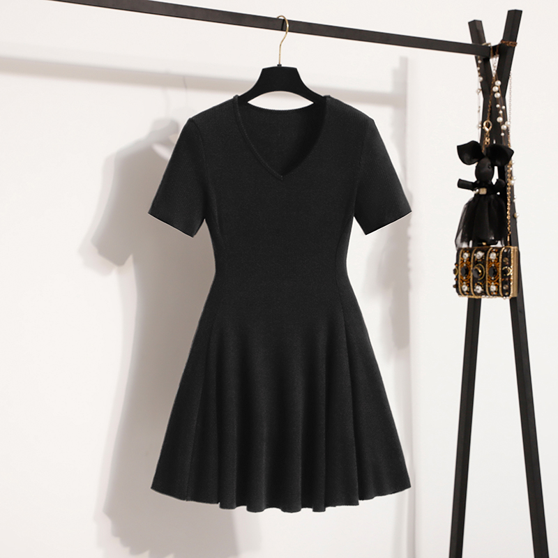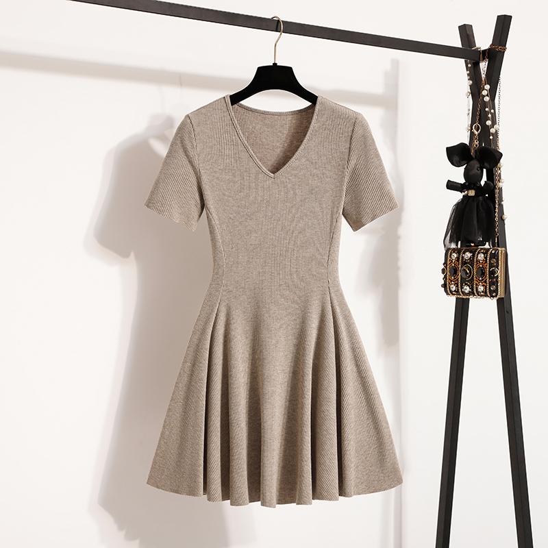 BY13579# 大码女装夏装新款短袖针织连衣裙修身显瘦法式V领连衣裙 服裝批發女裝批發服飾貨源