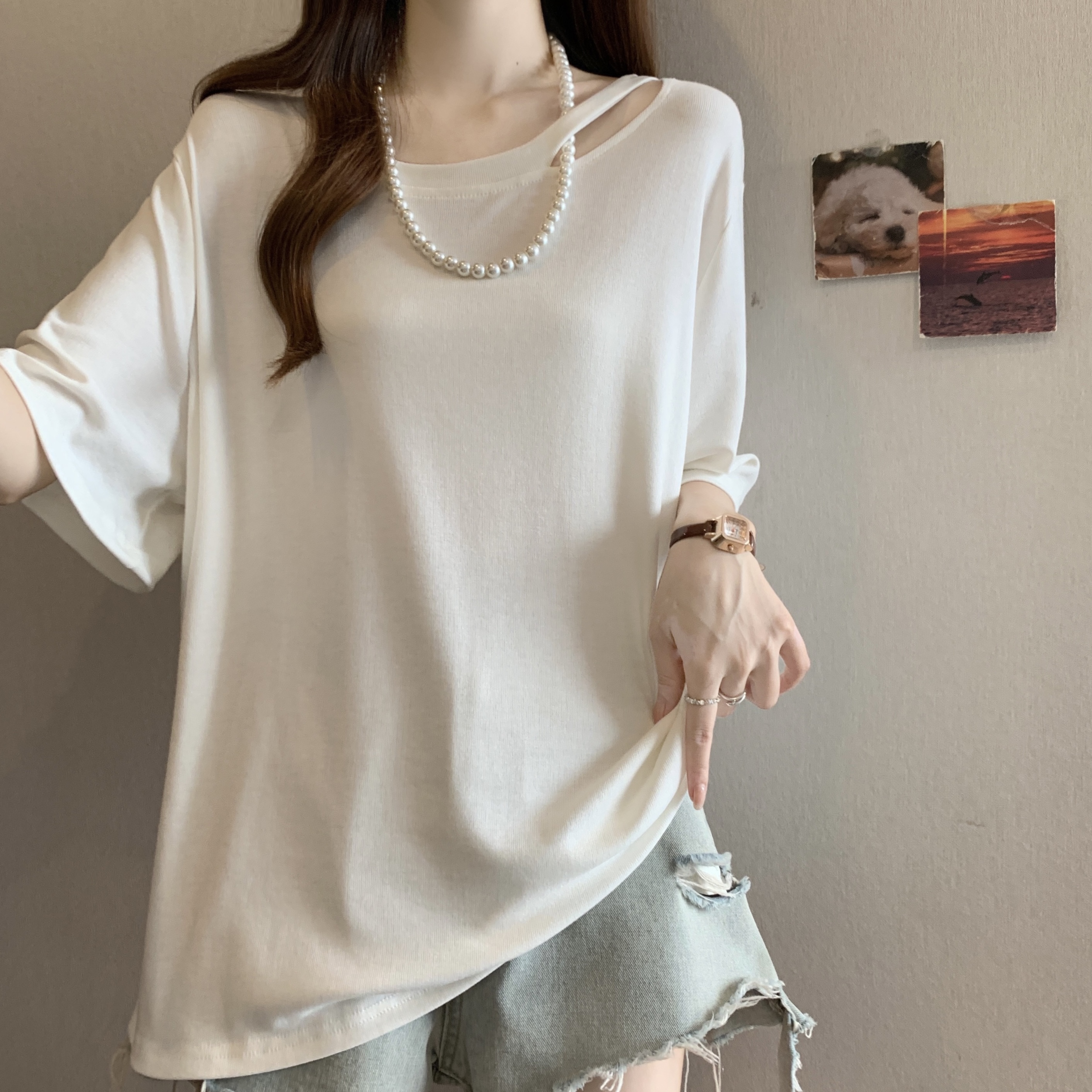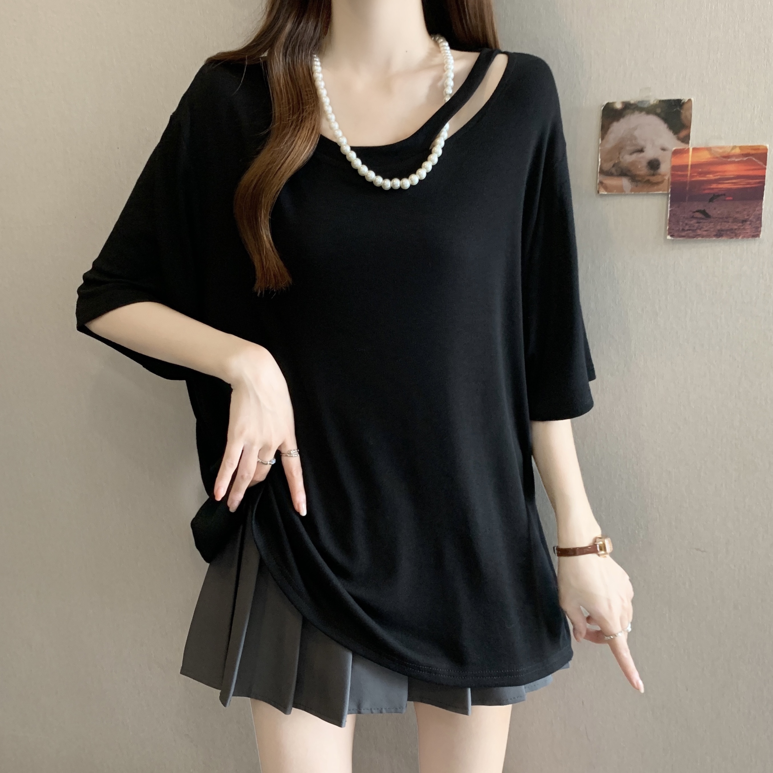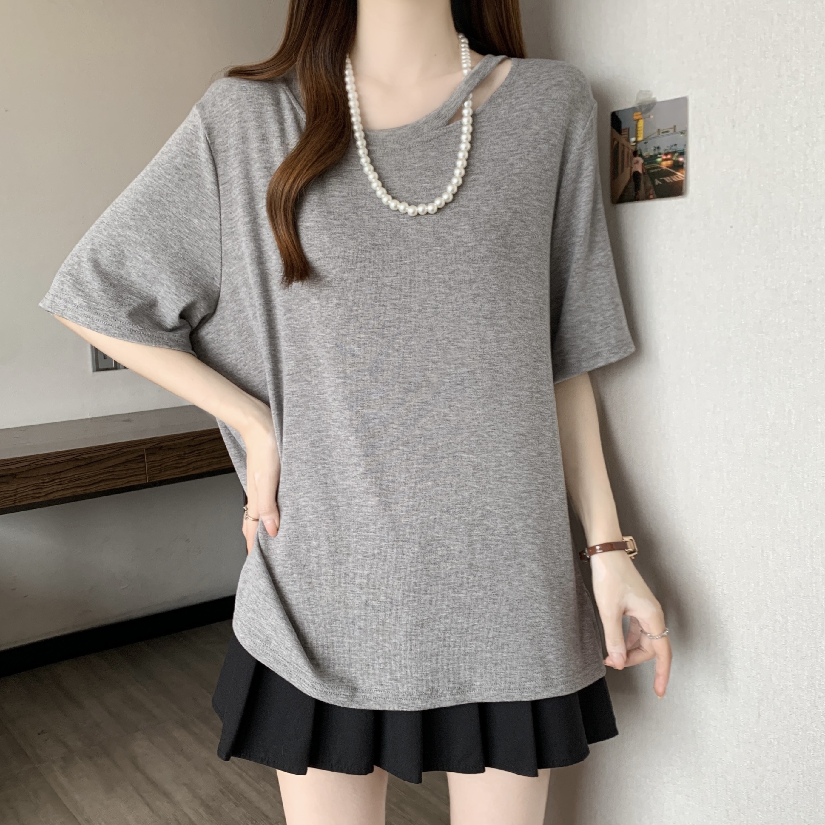 BY13620# 欧货大版正肩短袖t恤女夏季新款胖mm大码女装宽松遮肚U领上衣 服裝批發女裝批發服飾貨源