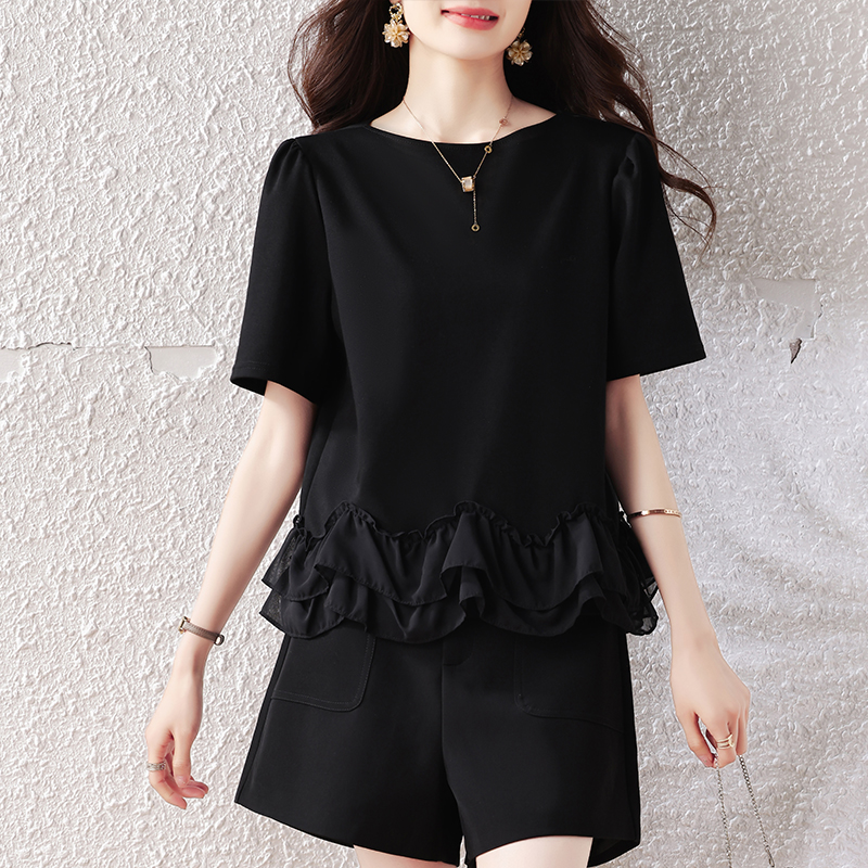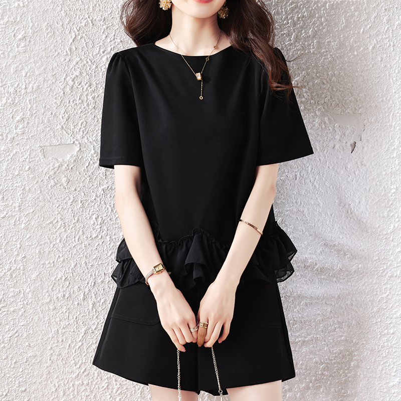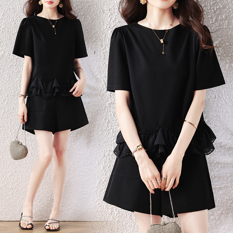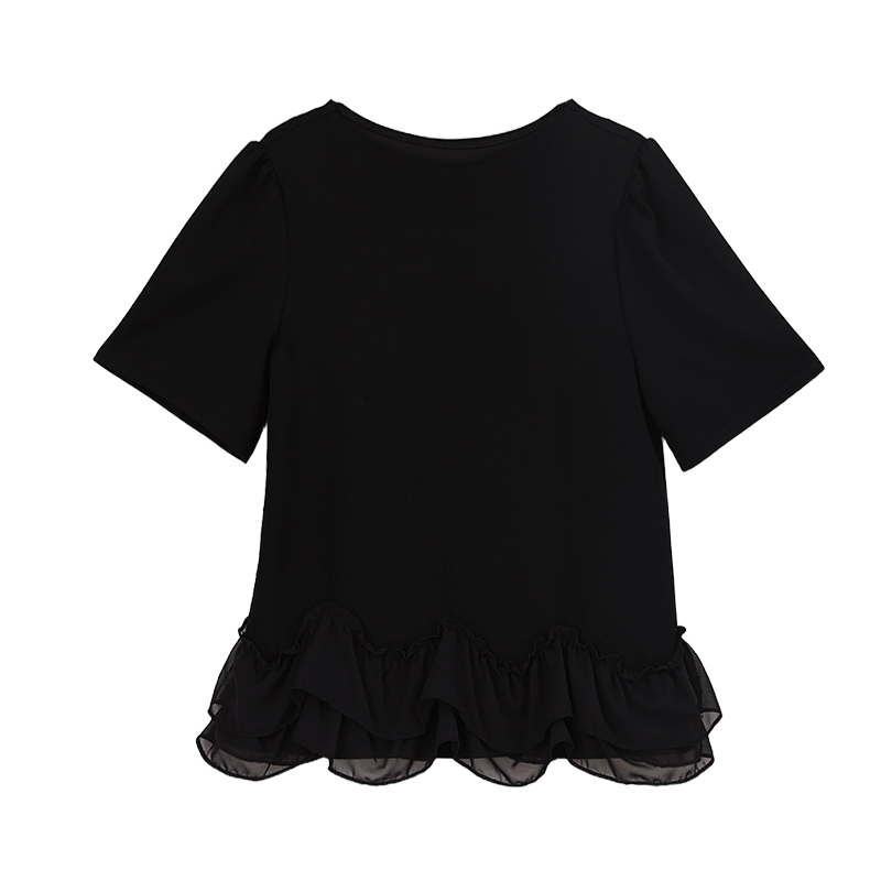 BY14077# 大码女装夏新款宽松遮肚荷叶边T恤圆领短袖显瘦打底上衣 服裝批發女裝批發服飾貨源