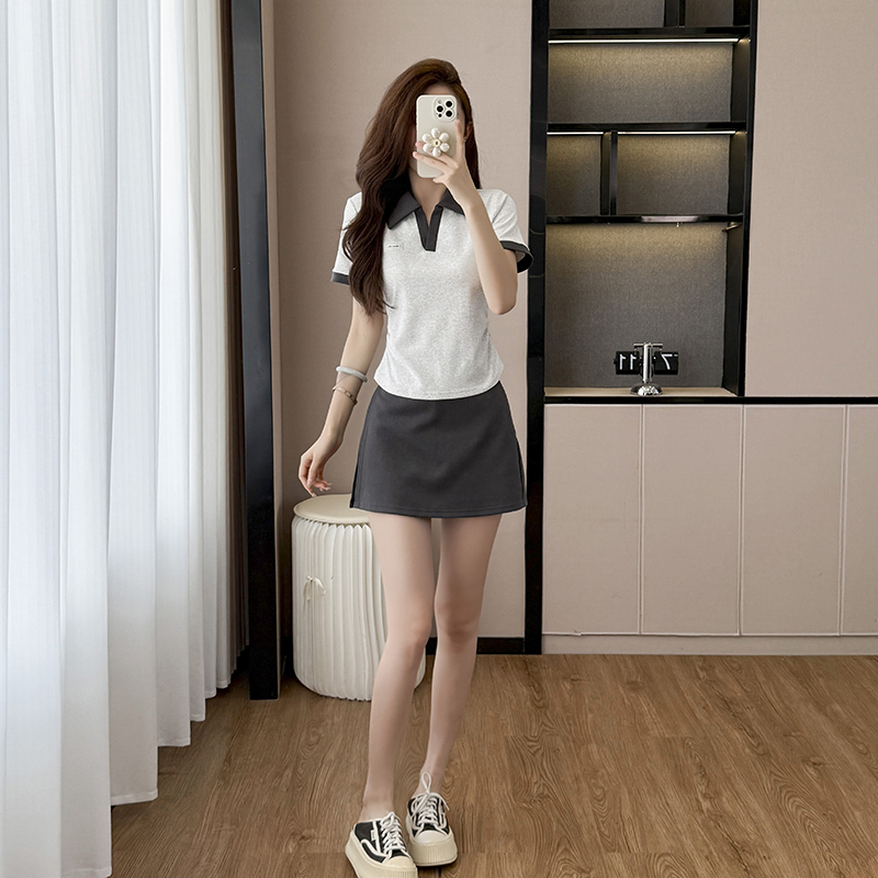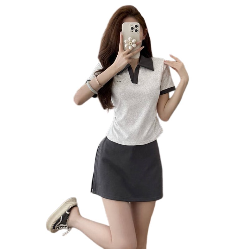 BY14120# 夏季新款韩系简约休闲运动风通勤百搭上下套短裙 服裝批發女裝批發服飾貨源