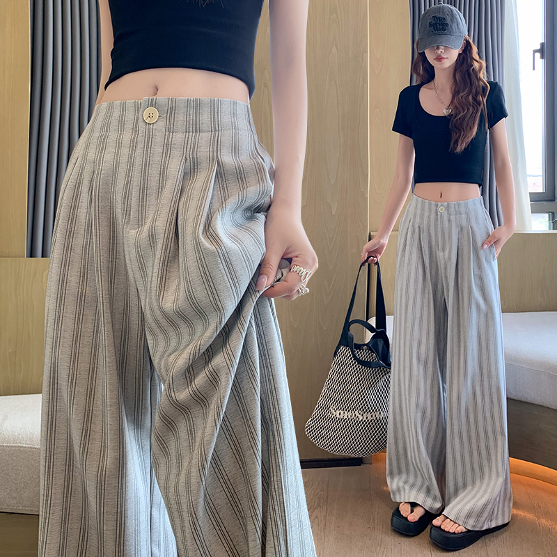 高级感宽松条纹棉麻休闲阔腿裤女夏季薄款慵懒松弛感垂感长裤 服裝批發女裝批發服飾貨源