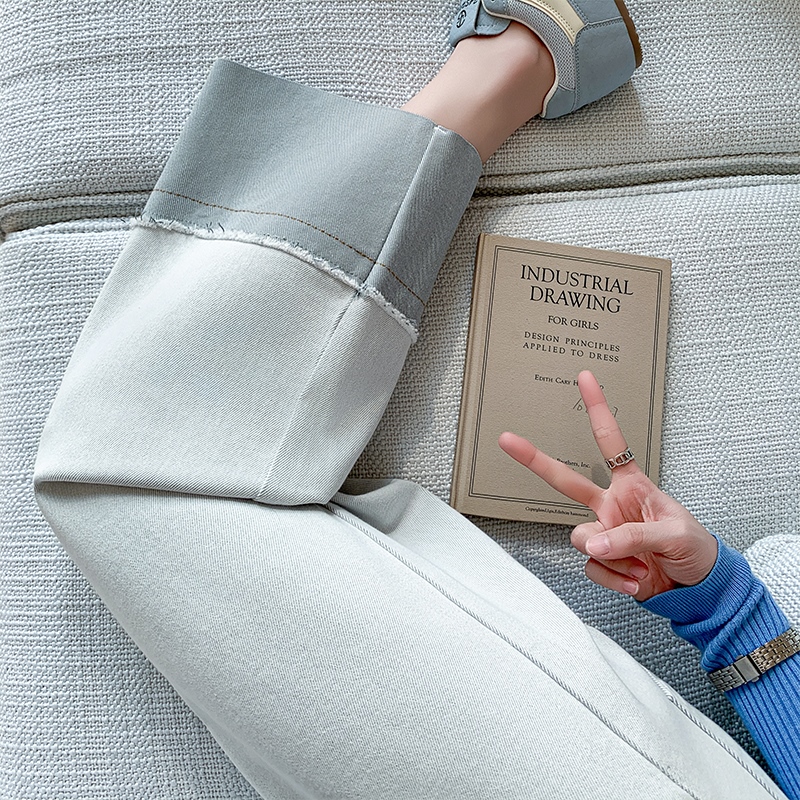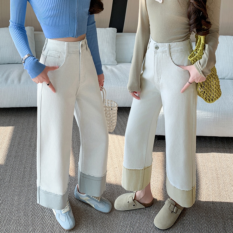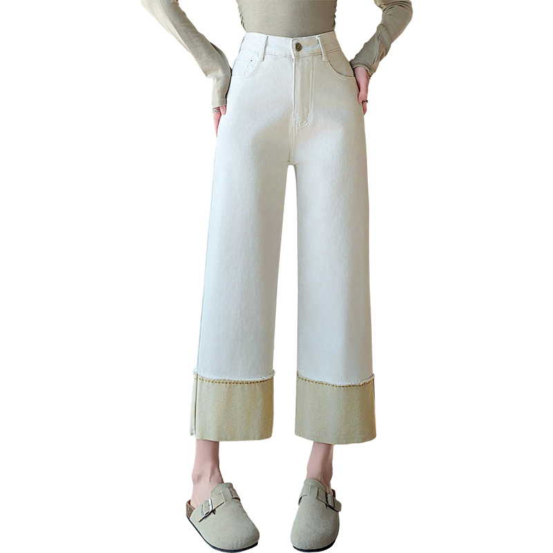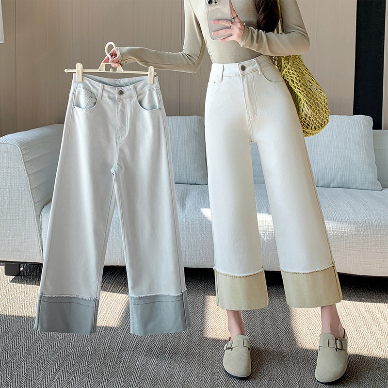 撞色直筒牛仔裤女夏季新款高腰显瘦设计感拼接九分阔腿裤 服裝批發女裝批發服飾貨源