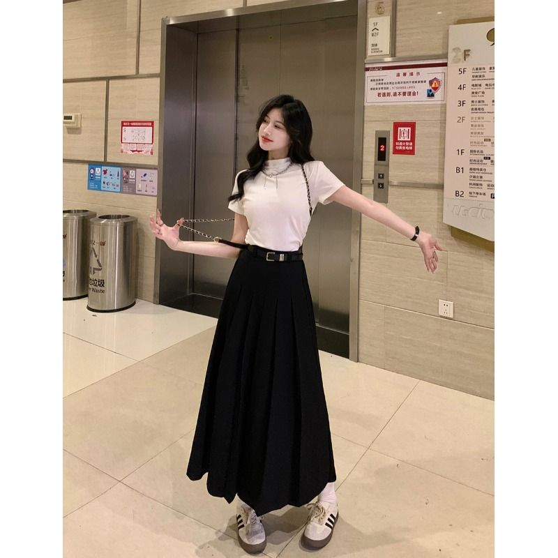 黑色半身裙+三环皮带