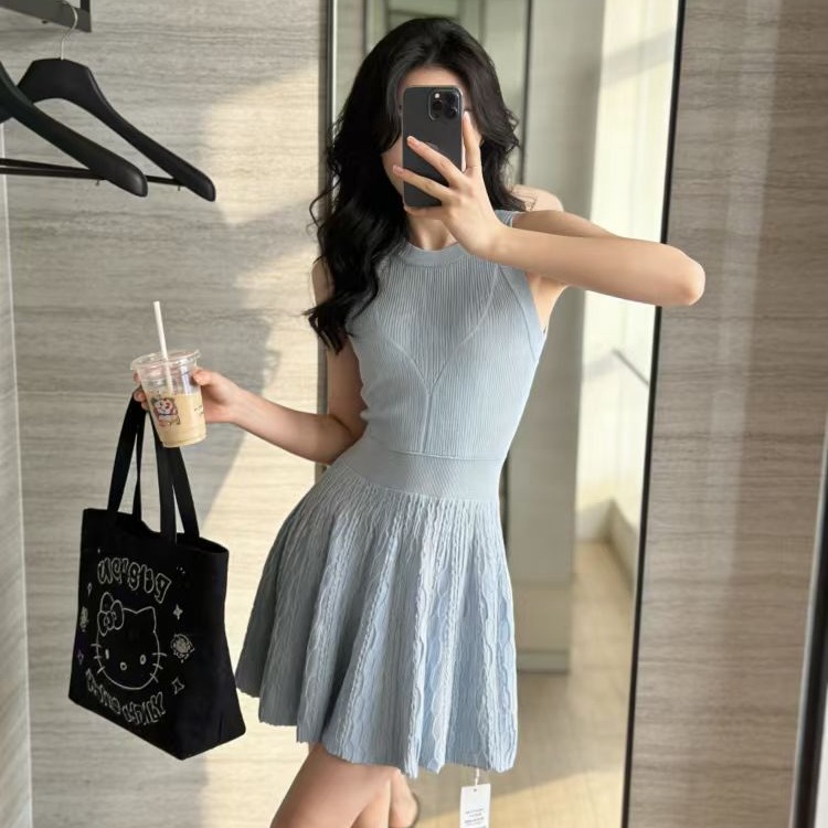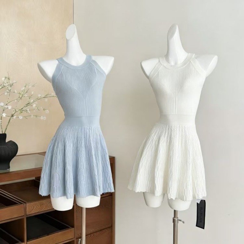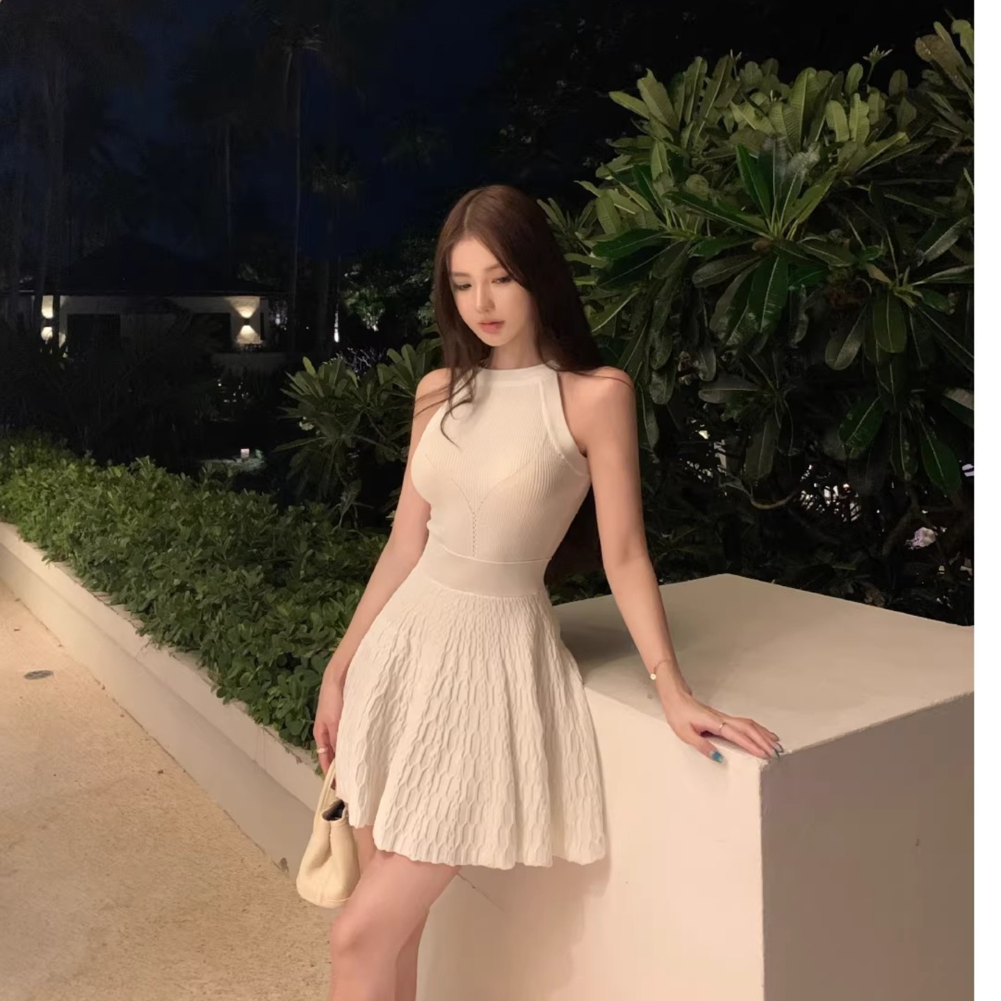 BY15839# 纯白之恋挂脖针织连衣裙女春夏气质高级感修身收腰裙子 服裝批發女裝批發服飾貨源