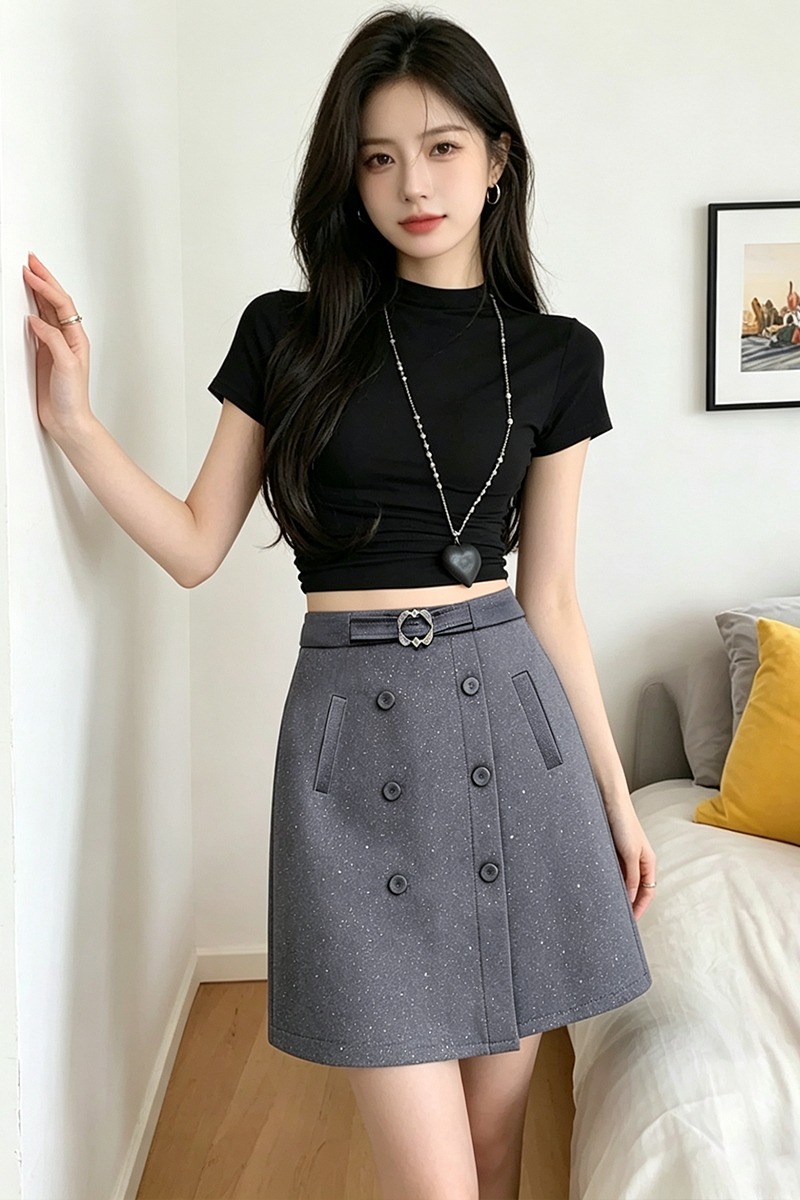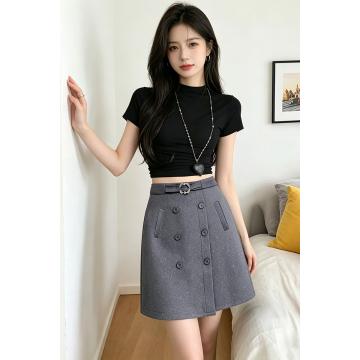 BY16166# 亮闪西装半身裙女高腰显瘦a字裙春夏大码设计感黑色中裙 服裝批發女裝批發服飾貨源