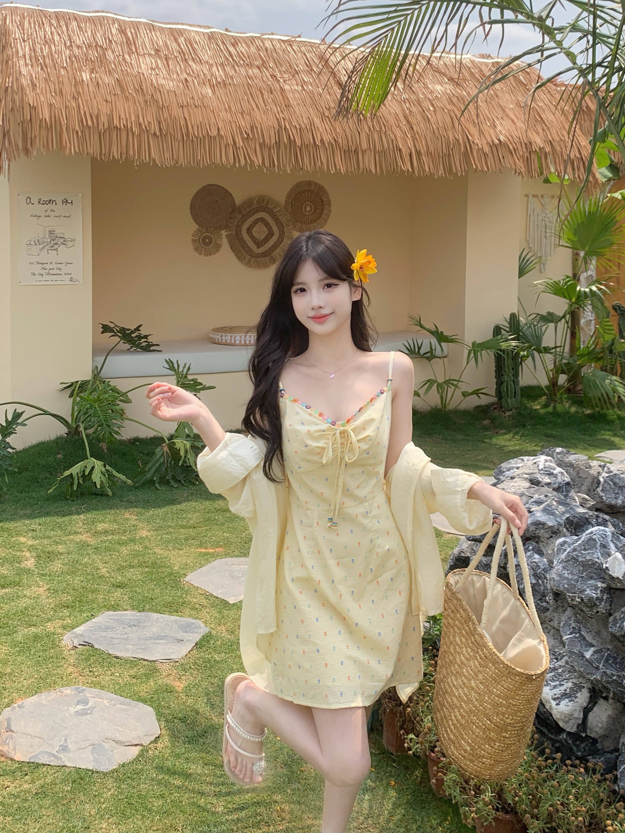 BY16176# 大码女装度假风花边连衣裙夏季新款微胖碎花吊带裙 服裝批發女裝批發服飾貨源