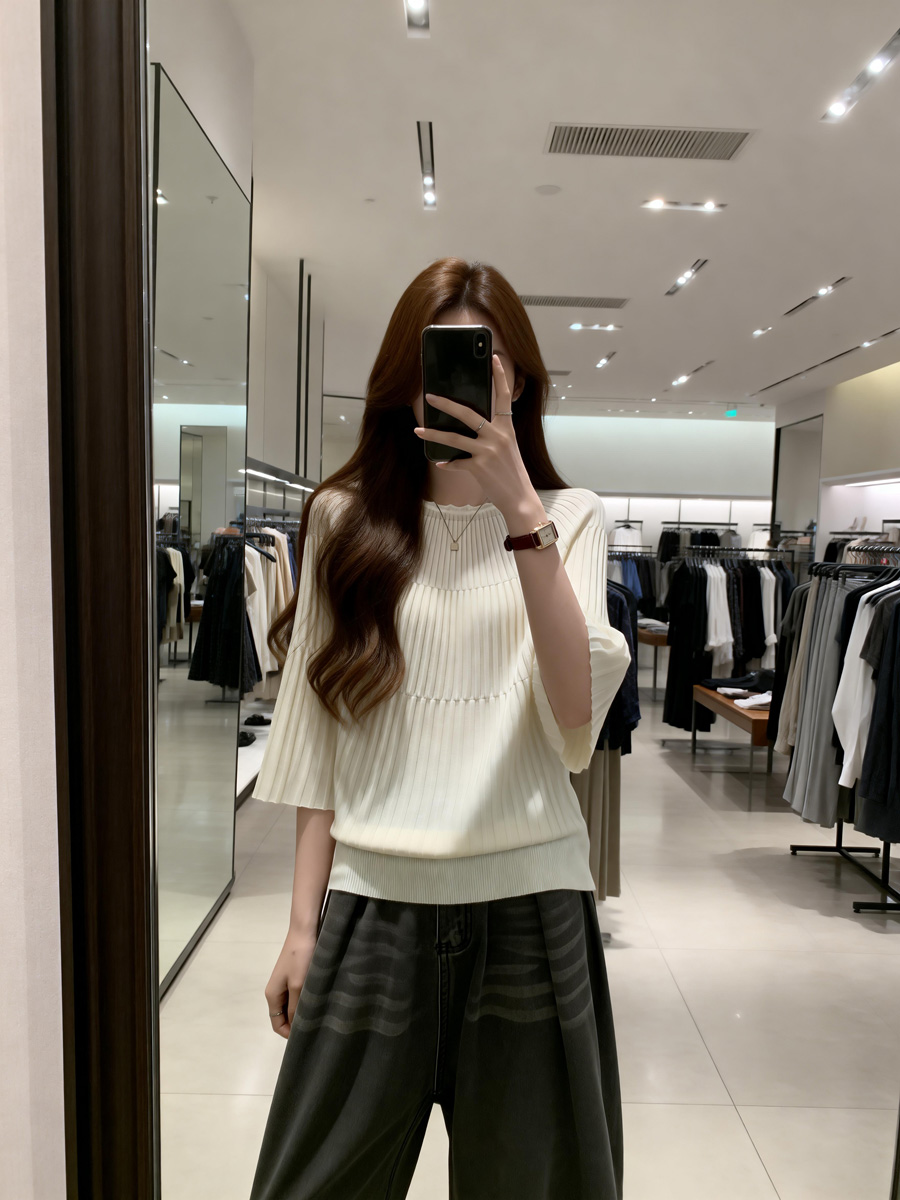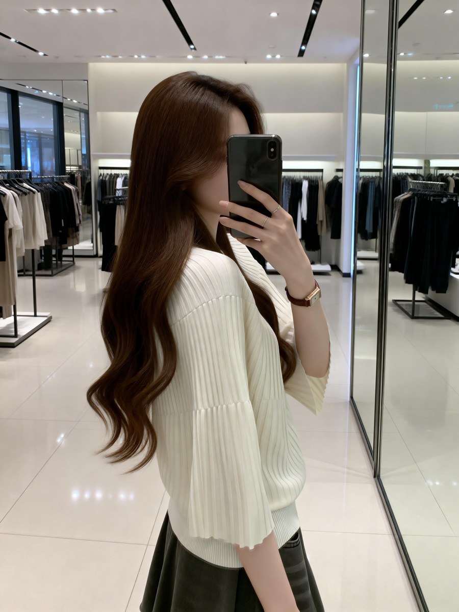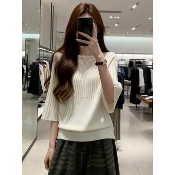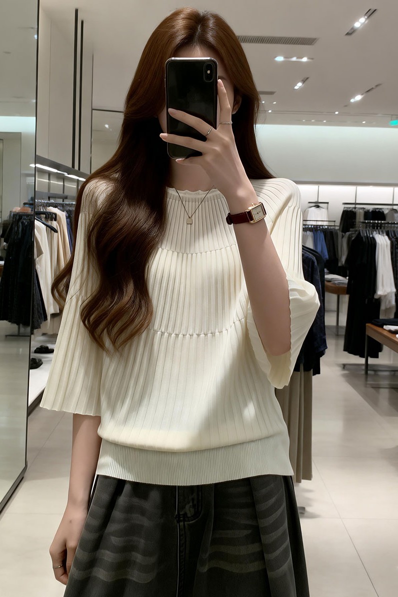 Home > 毛衣、针织衫 > BY16264# 夏季新款个性压褶百搭设计针织衫女大码宽松休闲冰丝上衣 服裝批發女裝批發服飾貨源
