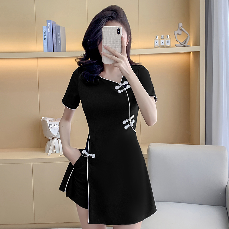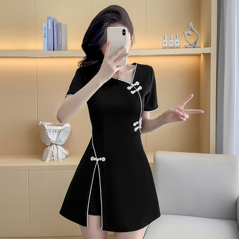 BY16361# 春夏季新款新中式旗袍连衣裙上衣短裤两件套套装女 服裝批發女裝批發服飾貨源