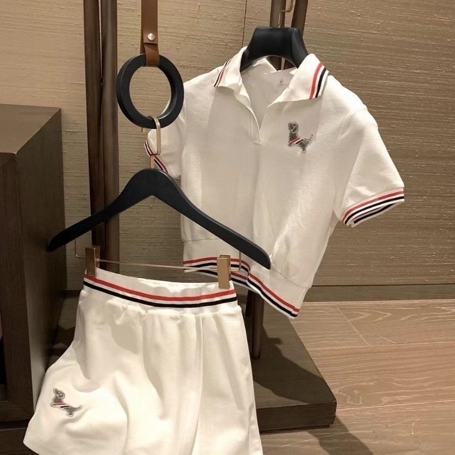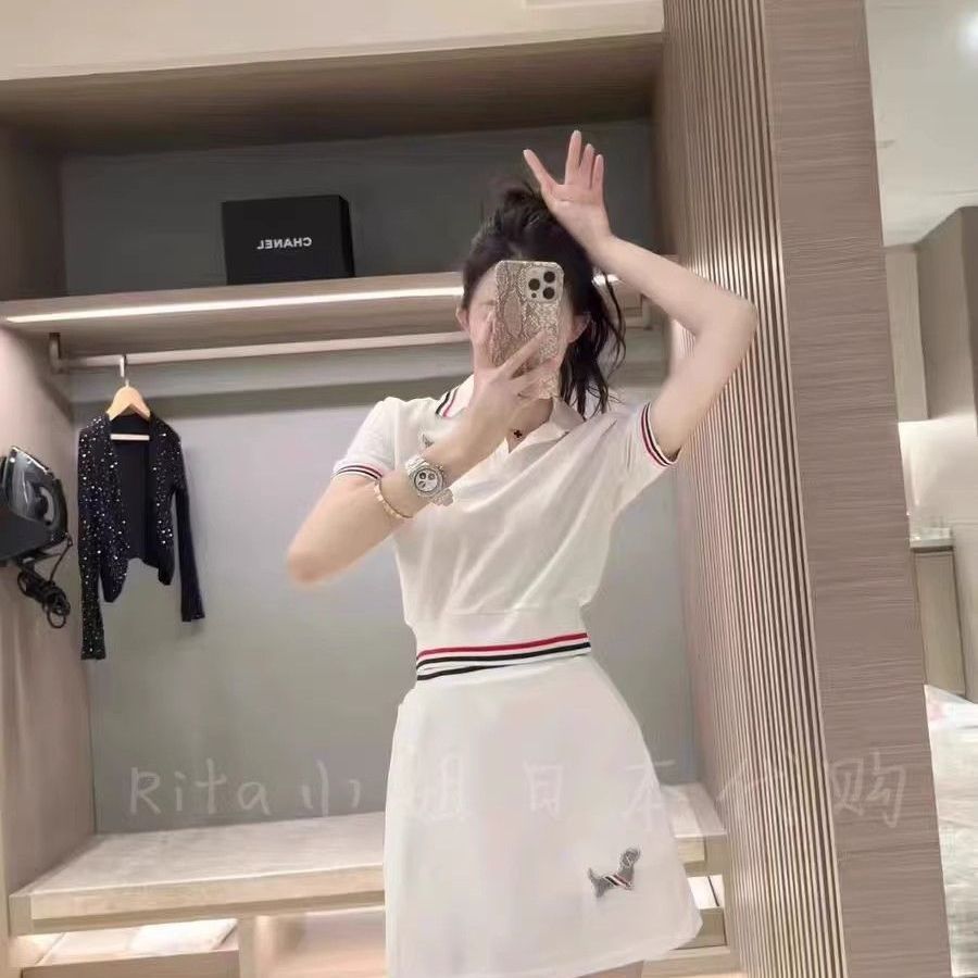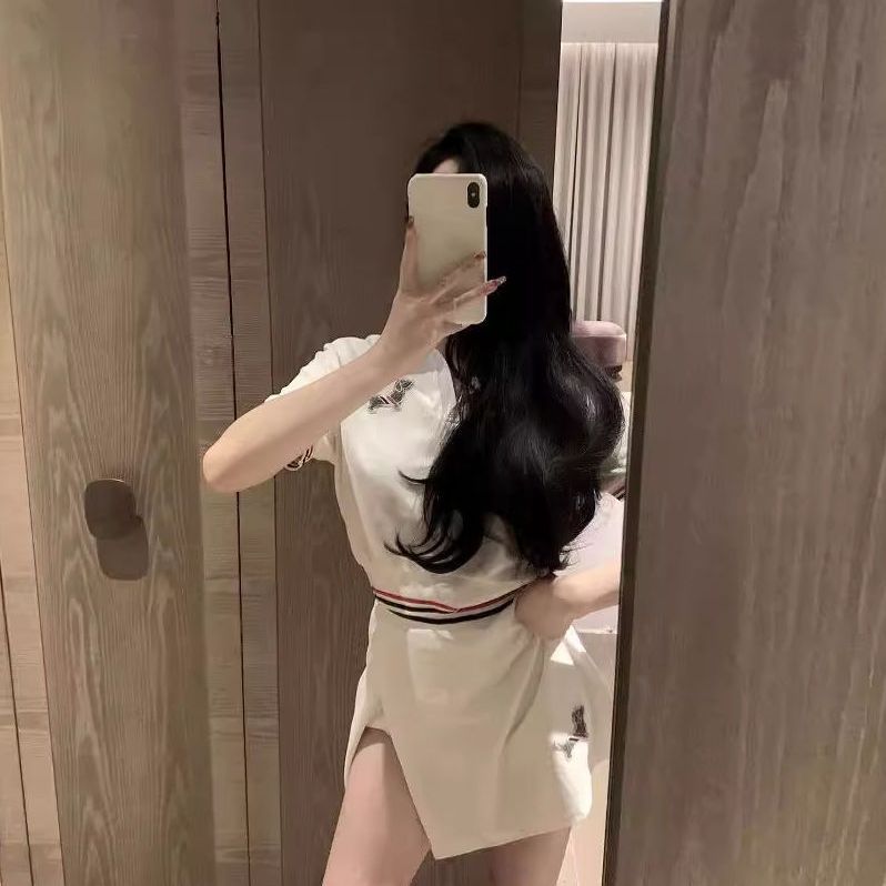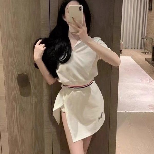 BY16397# 韩系小香风减龄套装女夏撞色翻领短袖上衣高腰开衩裙两件套潮 服裝批發女裝批發服飾貨源