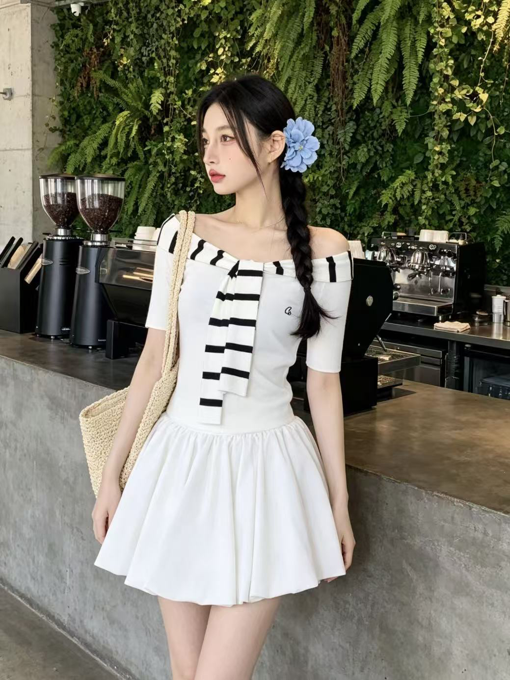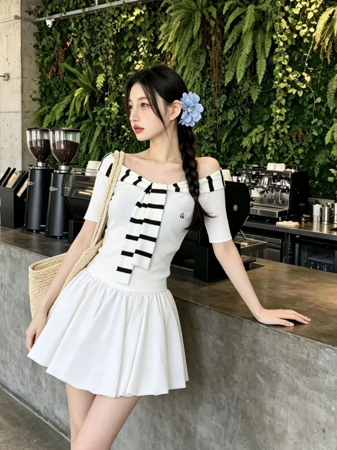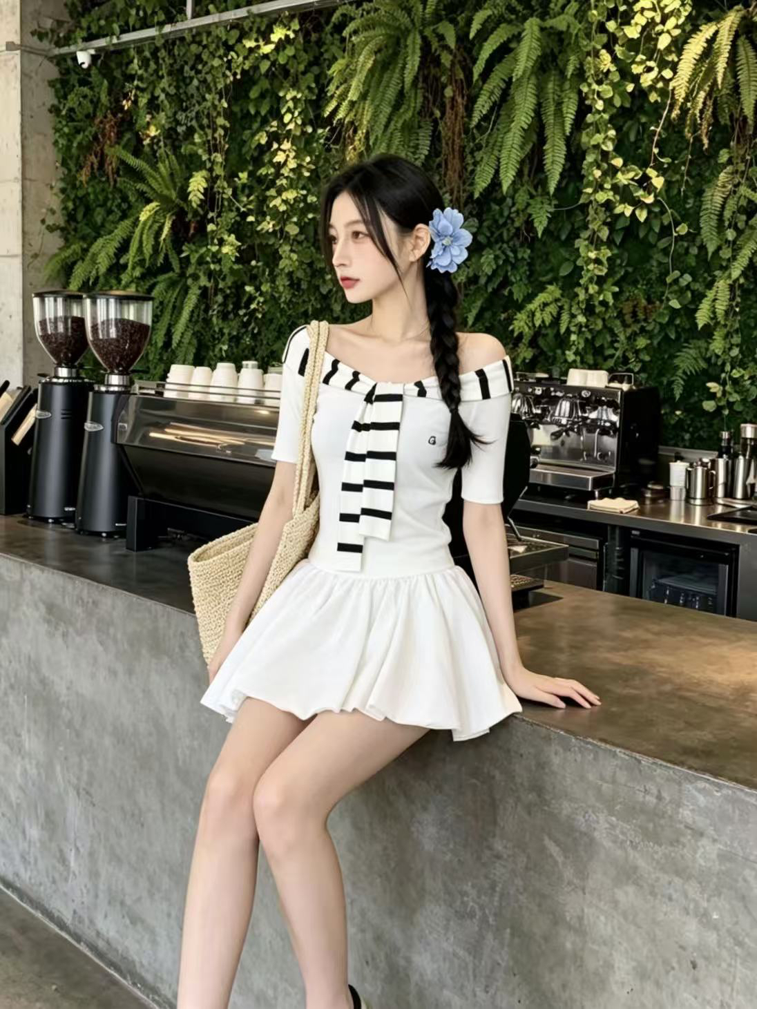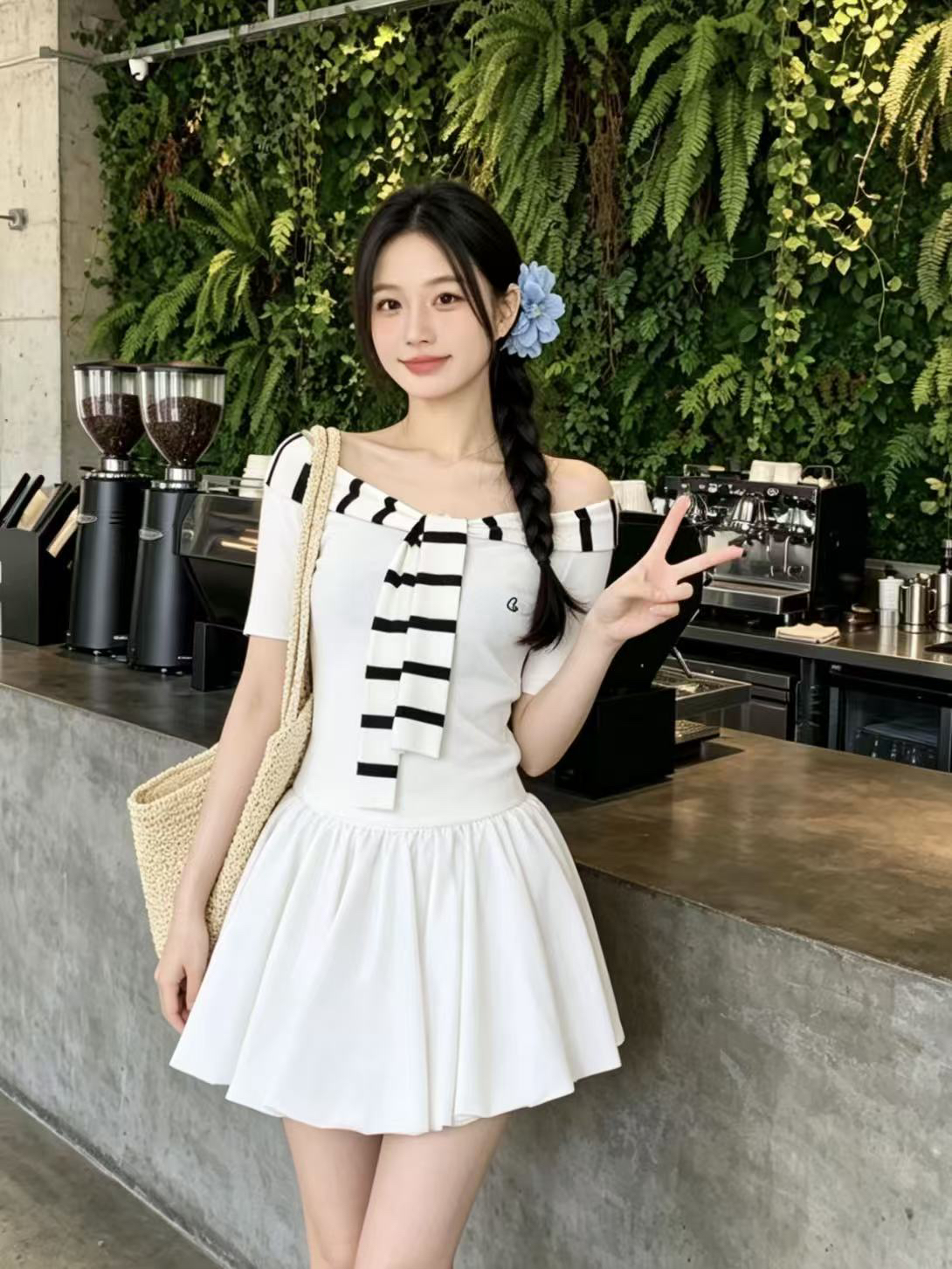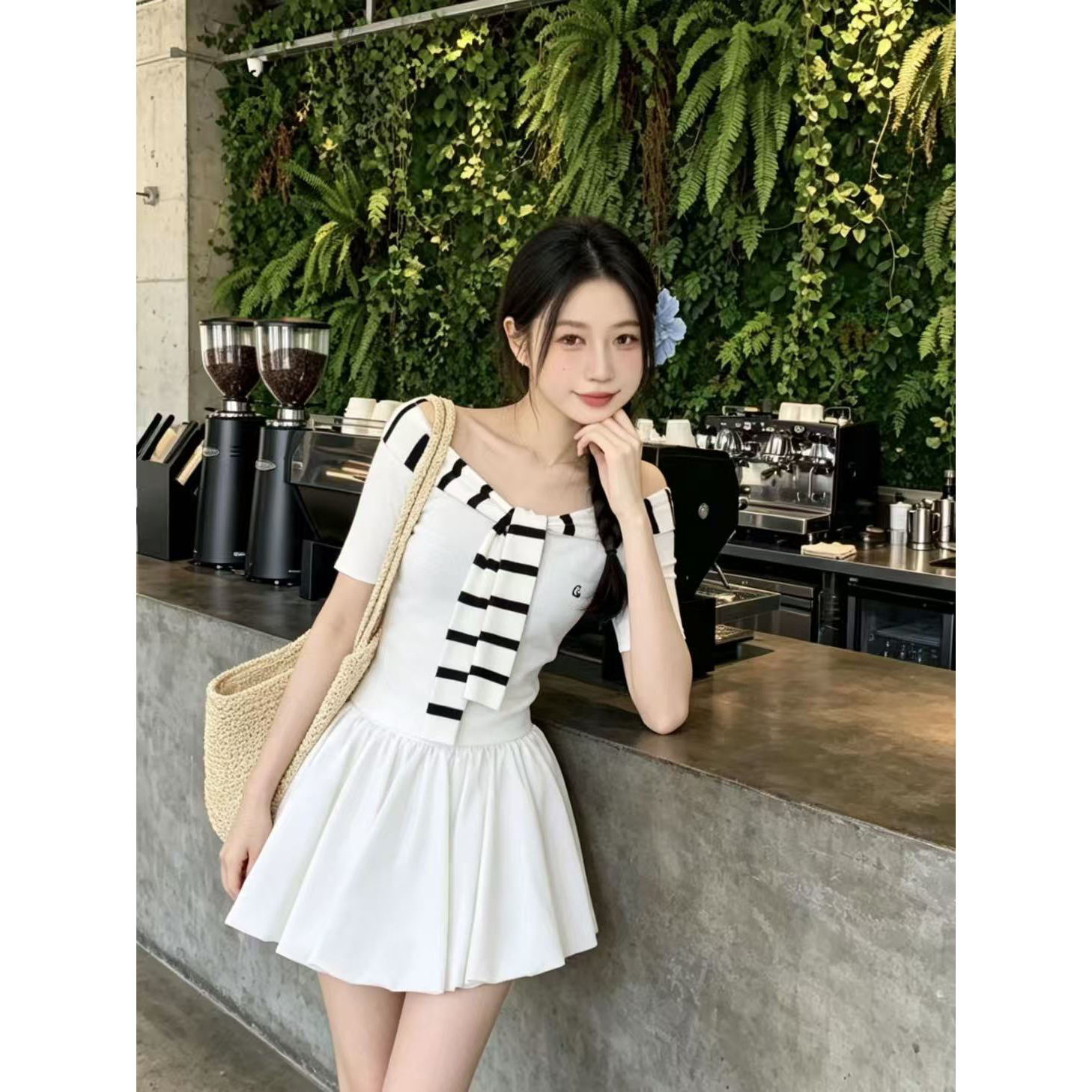 BY16524# 夏季短袖披肩T恤花苞裙旅游穿搭海边度假风套装三亚沙滩两件套装 服裝批發女裝批發服飾貨源